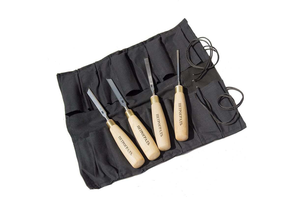 Набор стамесок, N11, 4 штуки ПЕТРОГРАДЪ М00016129 подойдет для работы с любыми изделиями из древесины.