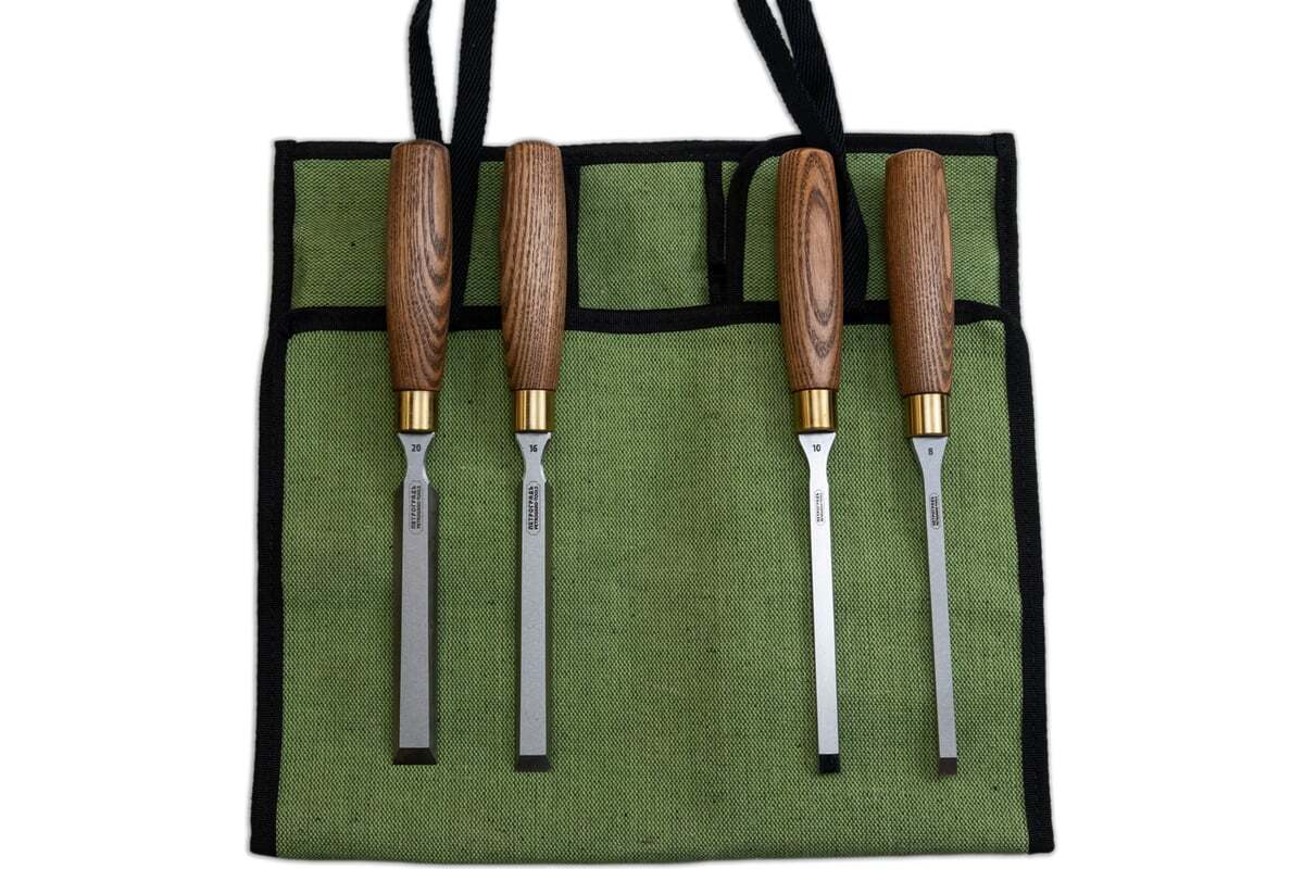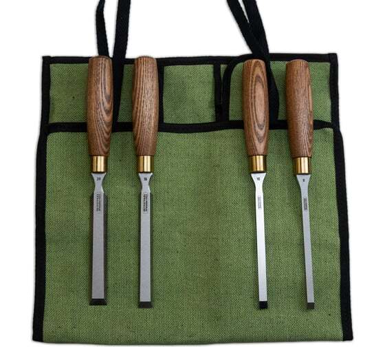 Набор стамесок Петроградъ серия Волга, 4 штуки, 8, 10, 16, 20, в сумке-скрутке М00021116 подходит для широкого спектра работ. В набор помещены самые востребованные размеры стамесок - 8, 10, 16, 20 мм. Толщина лезвия переменная и увеличивается от режущей кромки к рукояти.
