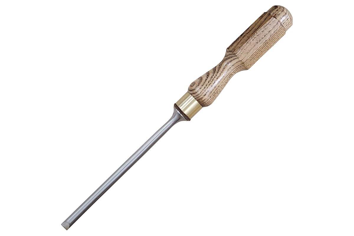 Резчицкая стамеска Петроградъ прямая, N3, 8 мм М00017804 предназначена для резьбы по твердым и мягким породам древесины. Стамеска подходит для множества задач от создания фигурных форм до подбора фона. Ее можно использовать со скосом вниз или вверх для создания вогнутых или выпуклых поверхностей.