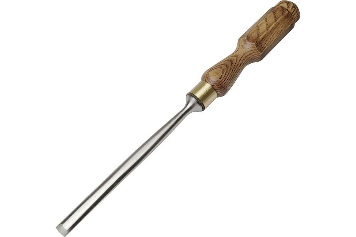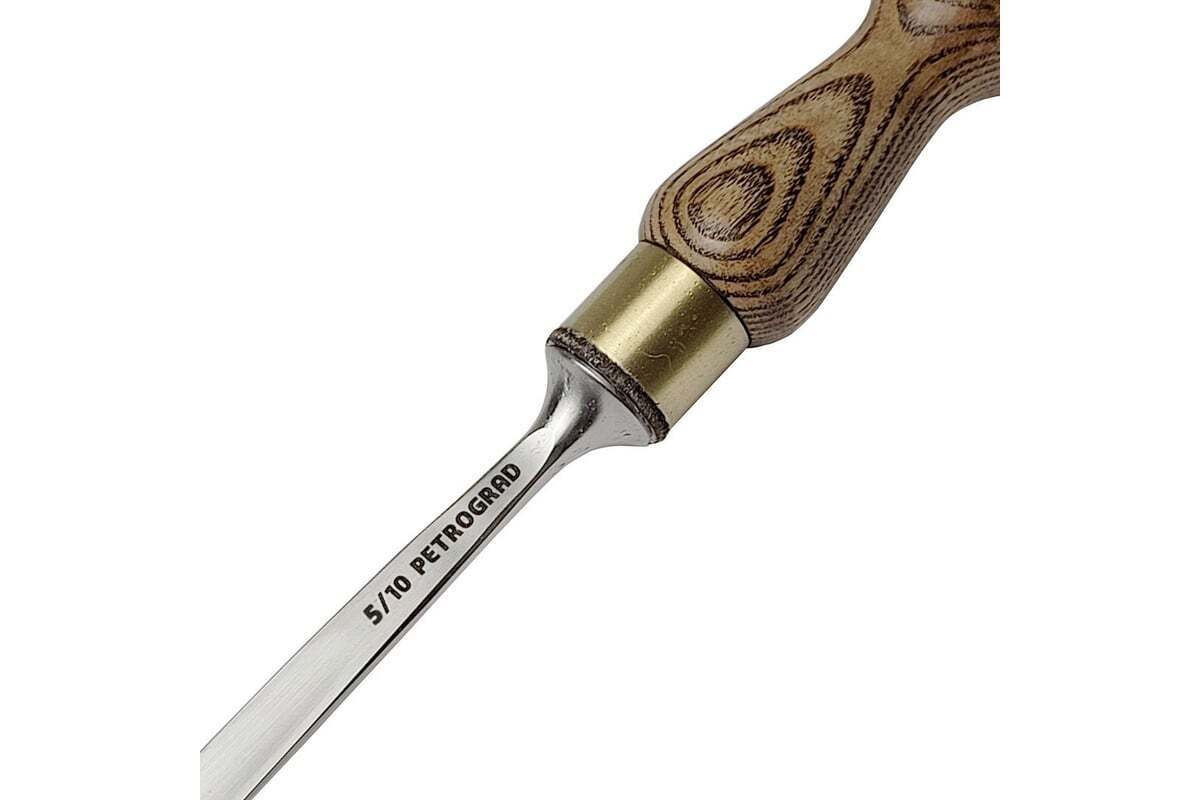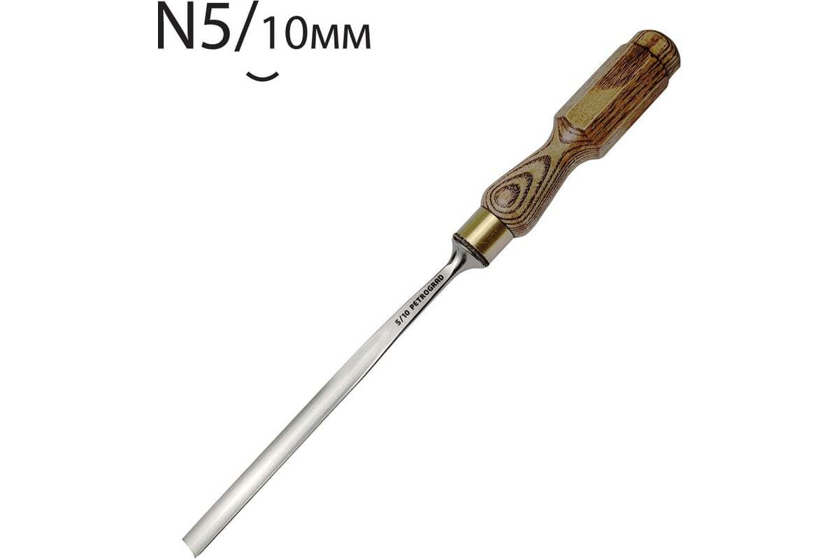 Резчицкая стамеска Петроградъ прямая, N5, 10 мм М00017763 предназначена для резьбы по твердым и мягким породам древесины. Стамеска подходит для множества задач от создания фигурных форм до подбора фона. Ее можно использовать со скосом вниз или вверх для создания вогнутых или выпуклых поверхностей.