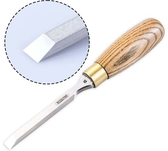 - Угол наклона бокового скоса стамески составляет 44 градуса