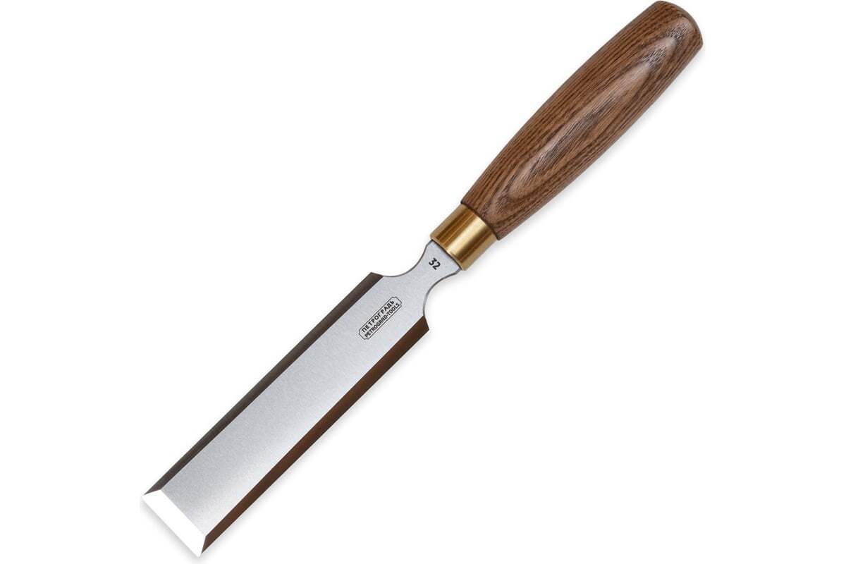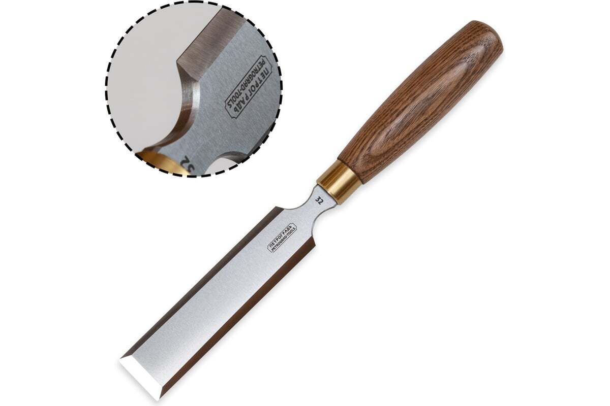 Полотно изготовлено из инструментальной высоколегированной стали и закалено до твердости 59-61 HRc. Спинка столярной стамески или рабочая сторона выровнена на плоскошлифовальных станках.