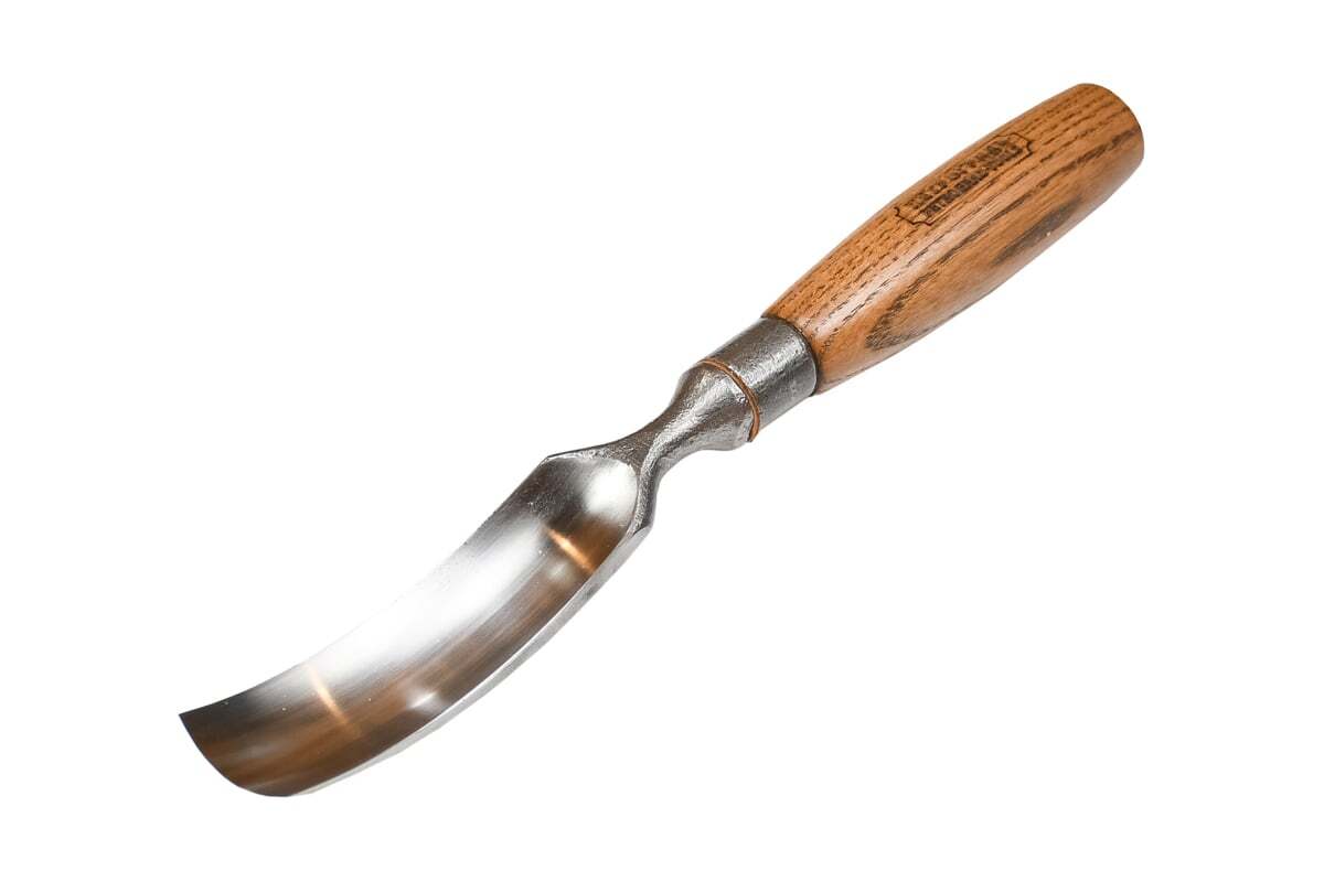 Данная стамеска подойдет, как для съема материала при классической резьбе, и особенно будет оценена любителями изготовления деревянной посуды и особенно ложек и тарелок из дерева.