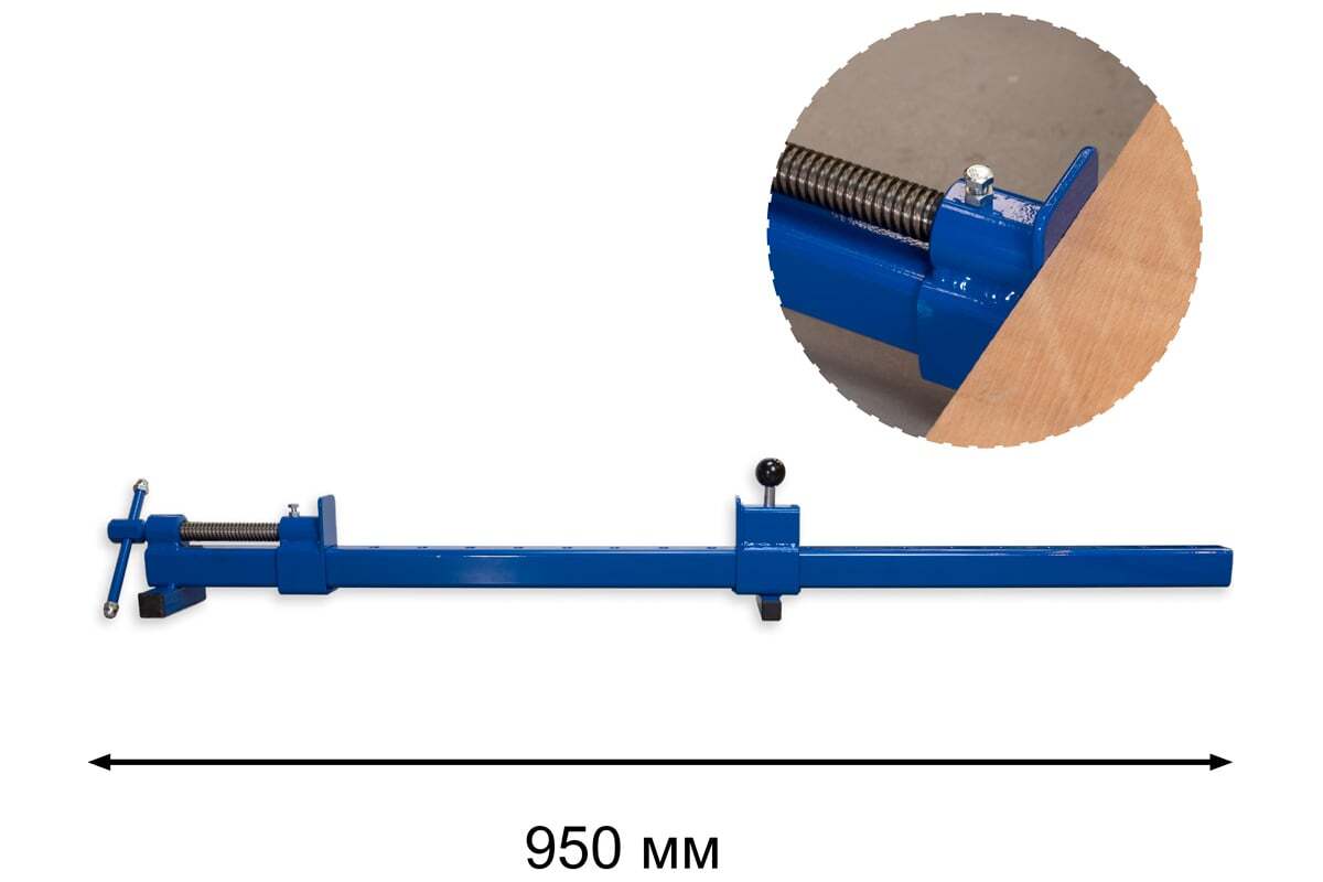 Корпусная струбцина Петроградъ 950мм М00020794 обладает мощной силой стягивания. Может быть использована для стяжки корпусов мебели или как струбцины-ваймы при склейке, сплачивании щитов для будущей мебели. Мощный квадратный профиль с толщиной стенок 4 мм, зажимной винт с силовой резьбой и ходом в 100 мм, переставная упорная планка с шагом в 50 мм, всё вместе представляют собой надежную и удобную столярную корпусную струбцину.