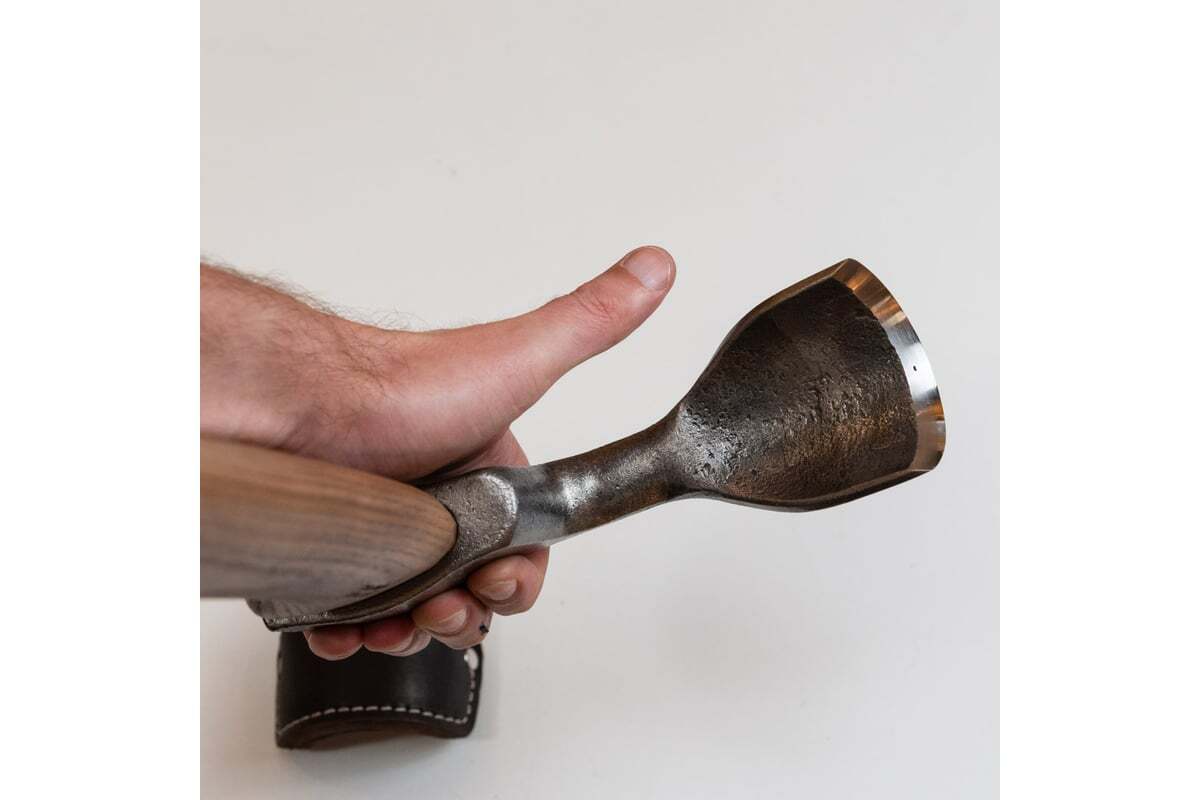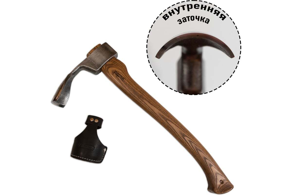 Полукруглое тесло N2, 500мм/70мм/1300г Петроградъ М00014038 - это плотницкий рубящий инструмент, вид топора с поперечным лезвием. Инструмент предназначен для выборки узких пазов, углублений и для работы в труднодоступных местах, для черновой обработки наружных поверхностей и при изготовлении срубов и деревянных каркасных строений (timber frame), изготовления мебели или интерьера в стиле лофт.
