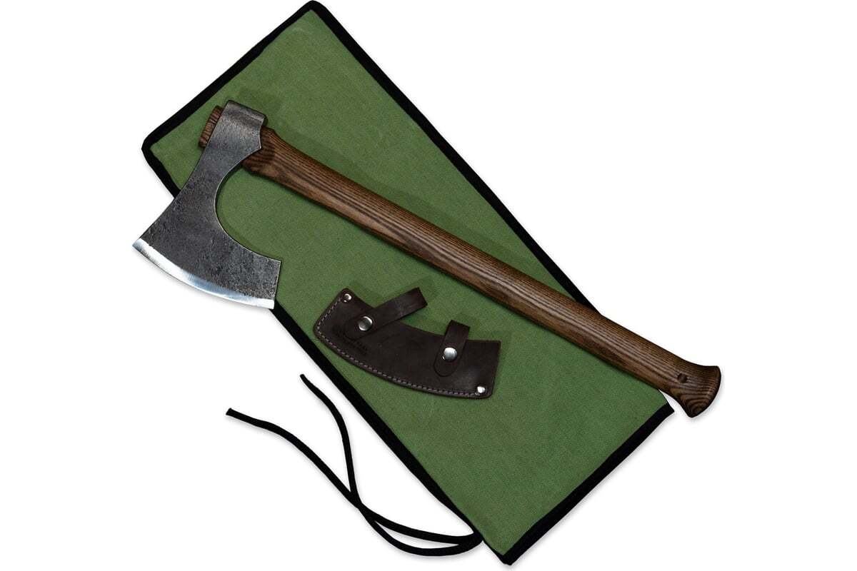 Топор комплектуется кожаным чехлом для защиты лезвия. Топор прекрасно сбалансирован и подходит для выполнения различных работ. Пригодится в походе, для небольших плотницких и столярных работ и просто как универсальный топор.