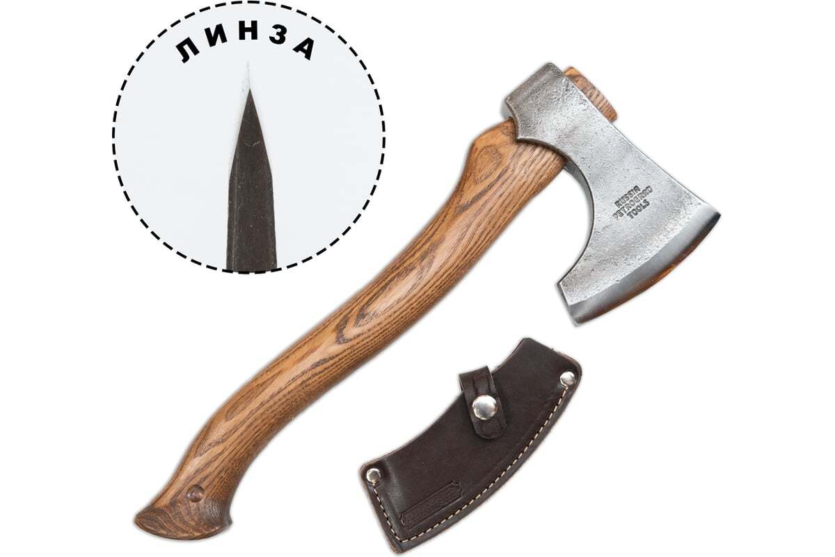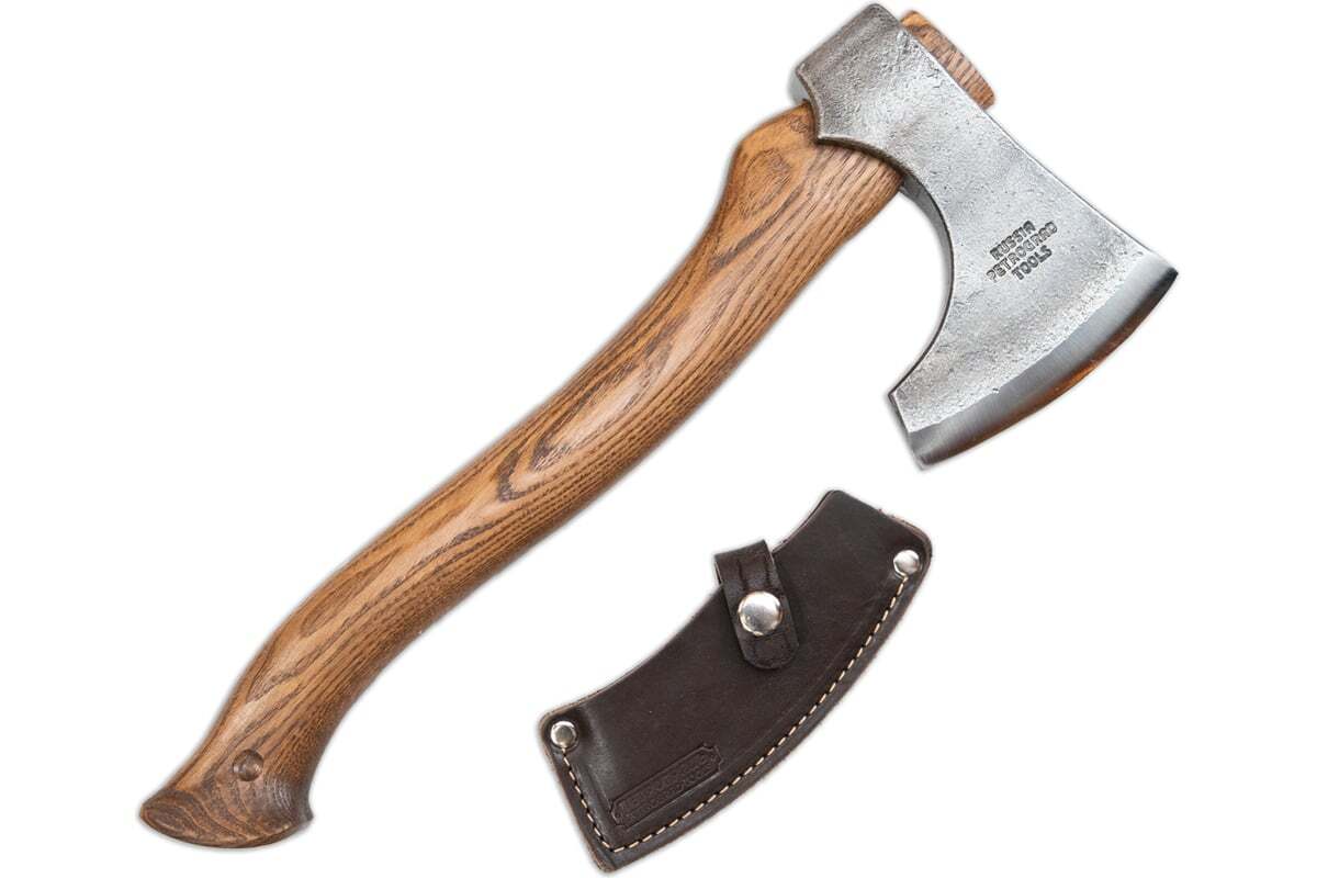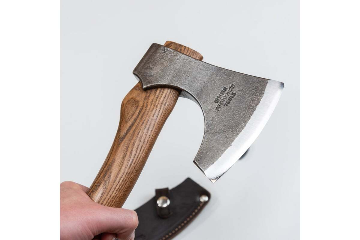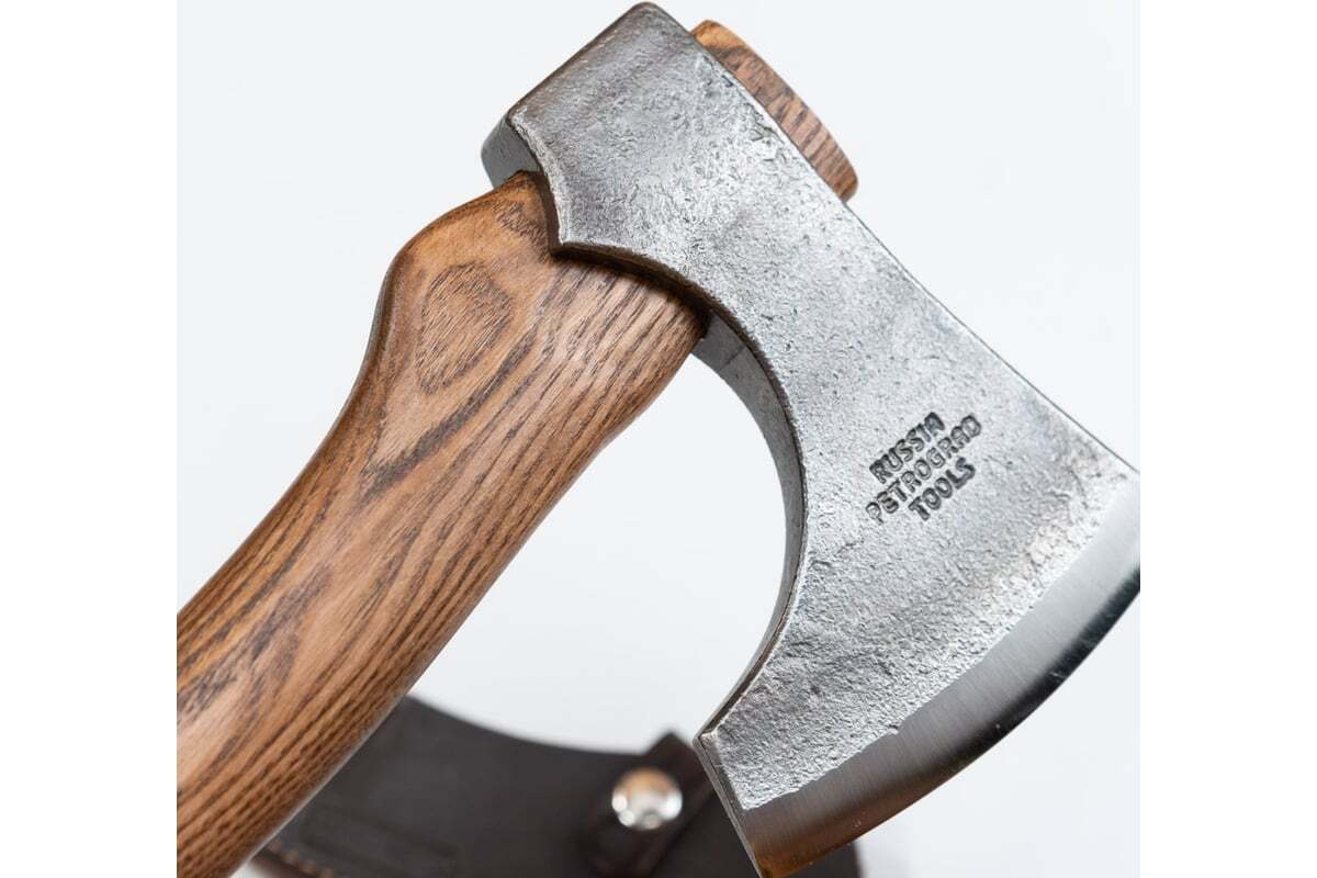 Кованый топор Петроградъ рославль 7 топорище н11, тип рк - линза (l) М00020963 подойдет для кратковременного похода или вылазки на природу. Топор прекрасно сбалансирован и подойдет для широкого вида работ в лесу, как походный топор на охоту или рыбалку.