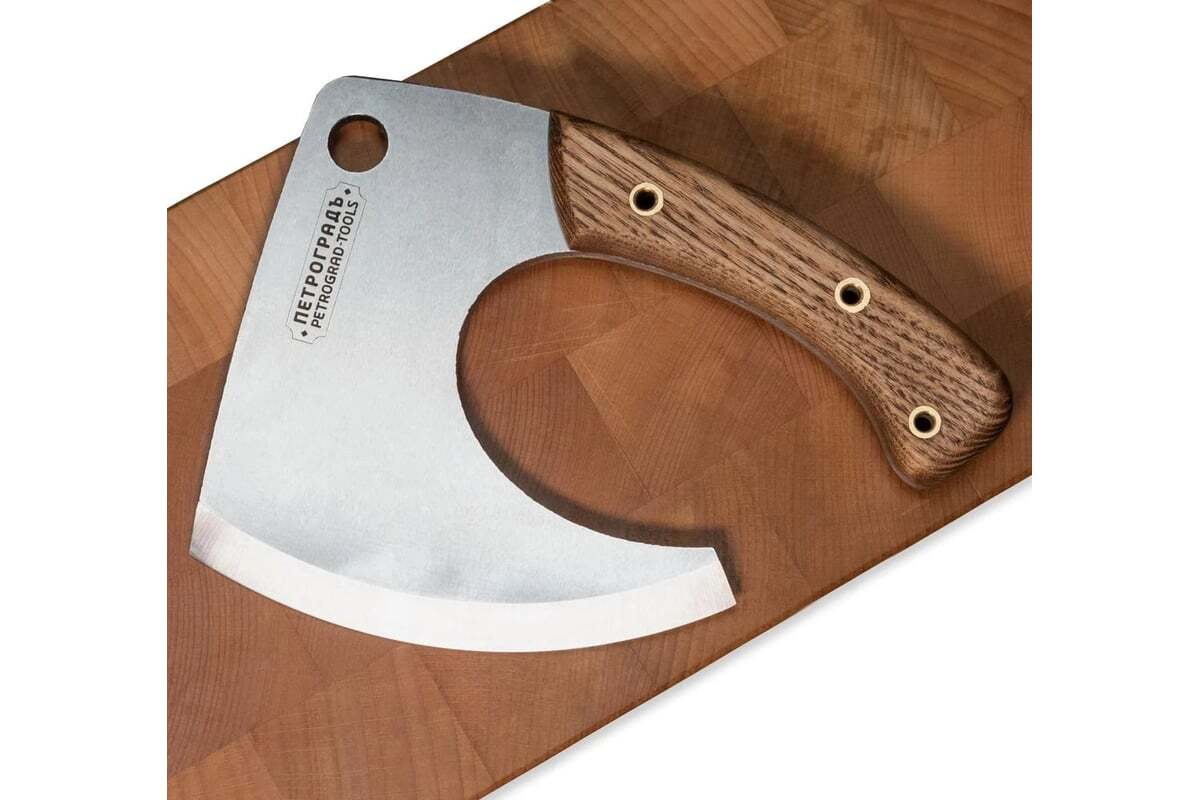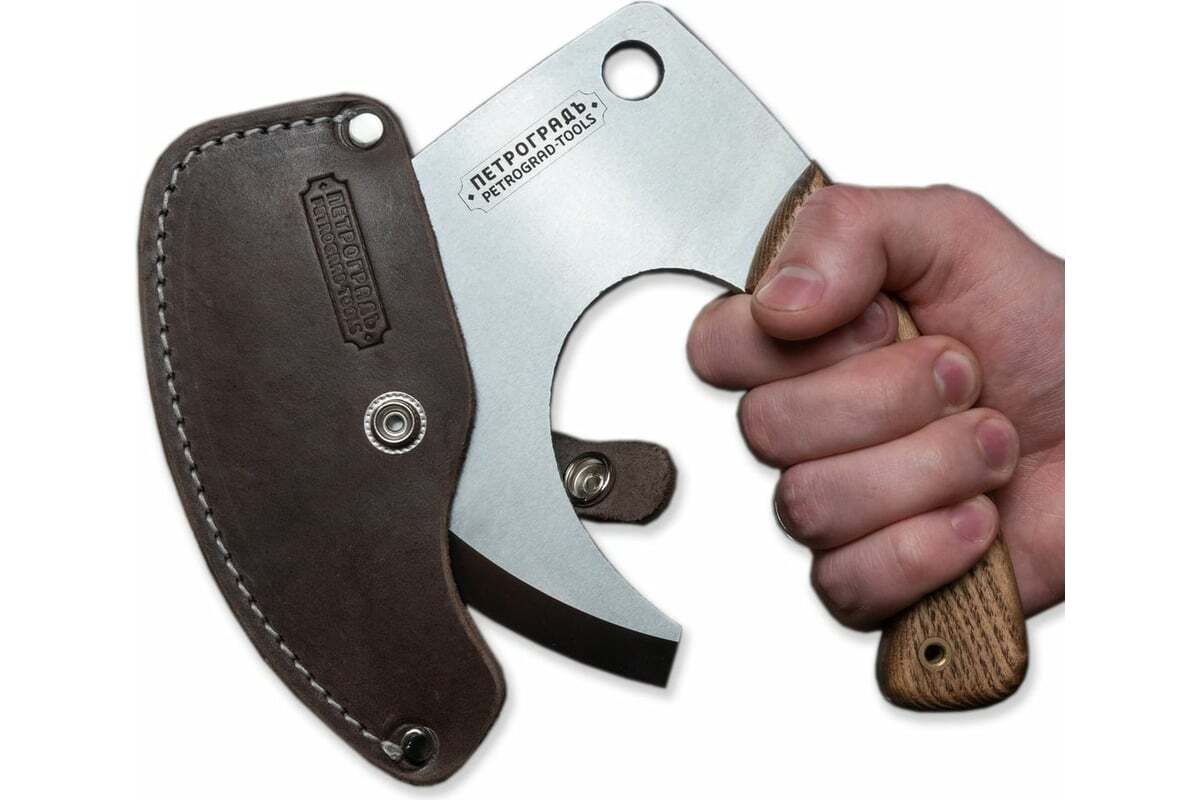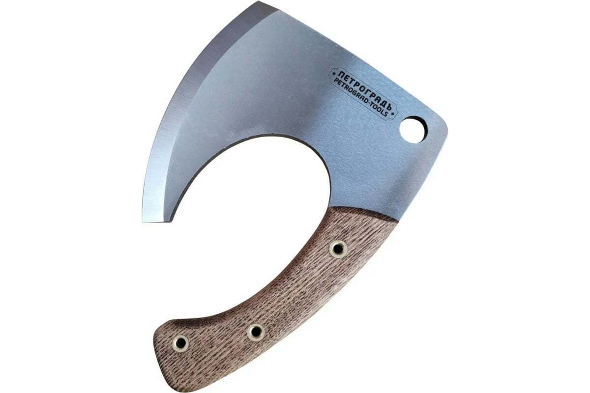 Кулачный топор Петроградъ модель Елец М00020430 - компактный инструмент для рубки веток и небольших изделий в походе, так же идеально подходит для резки мяса и других продуктов в домашнем хозяйстве и на кухне. По своей конструкции отличается от традиционной и обладает надежной цельнометаллической основой с ручками-накладками из дерева.