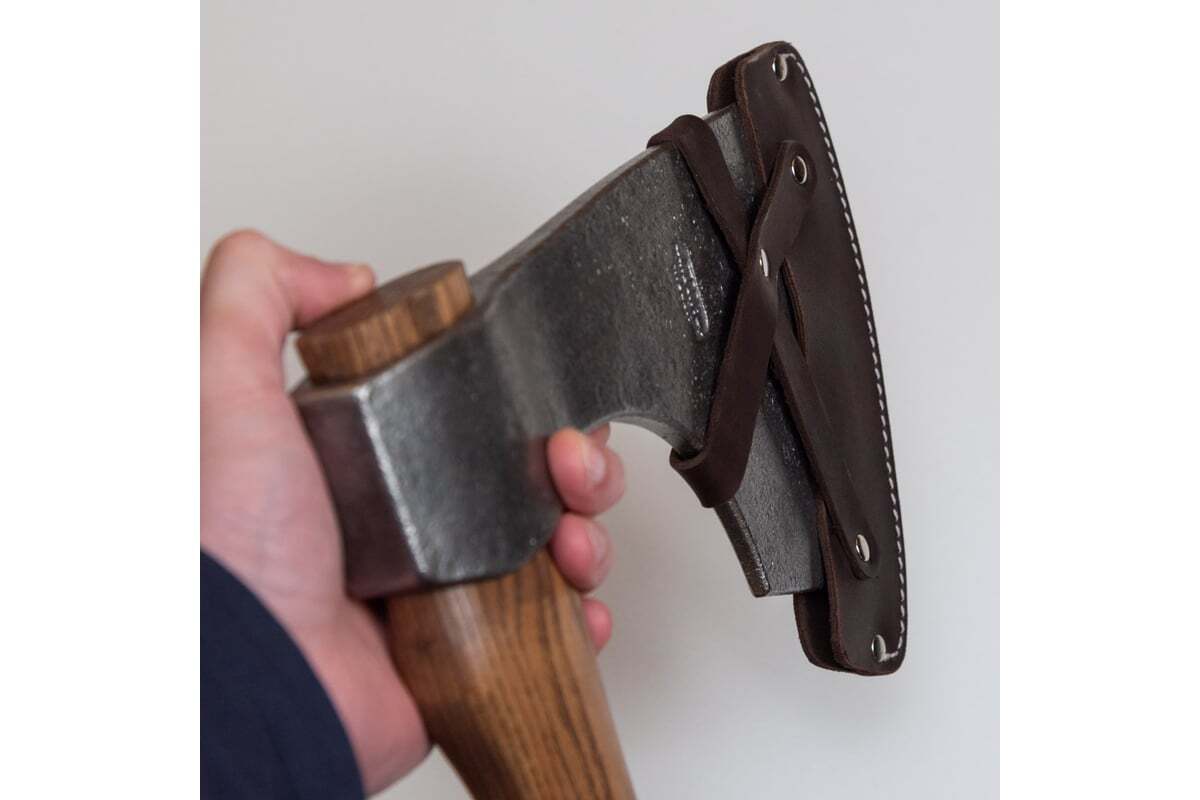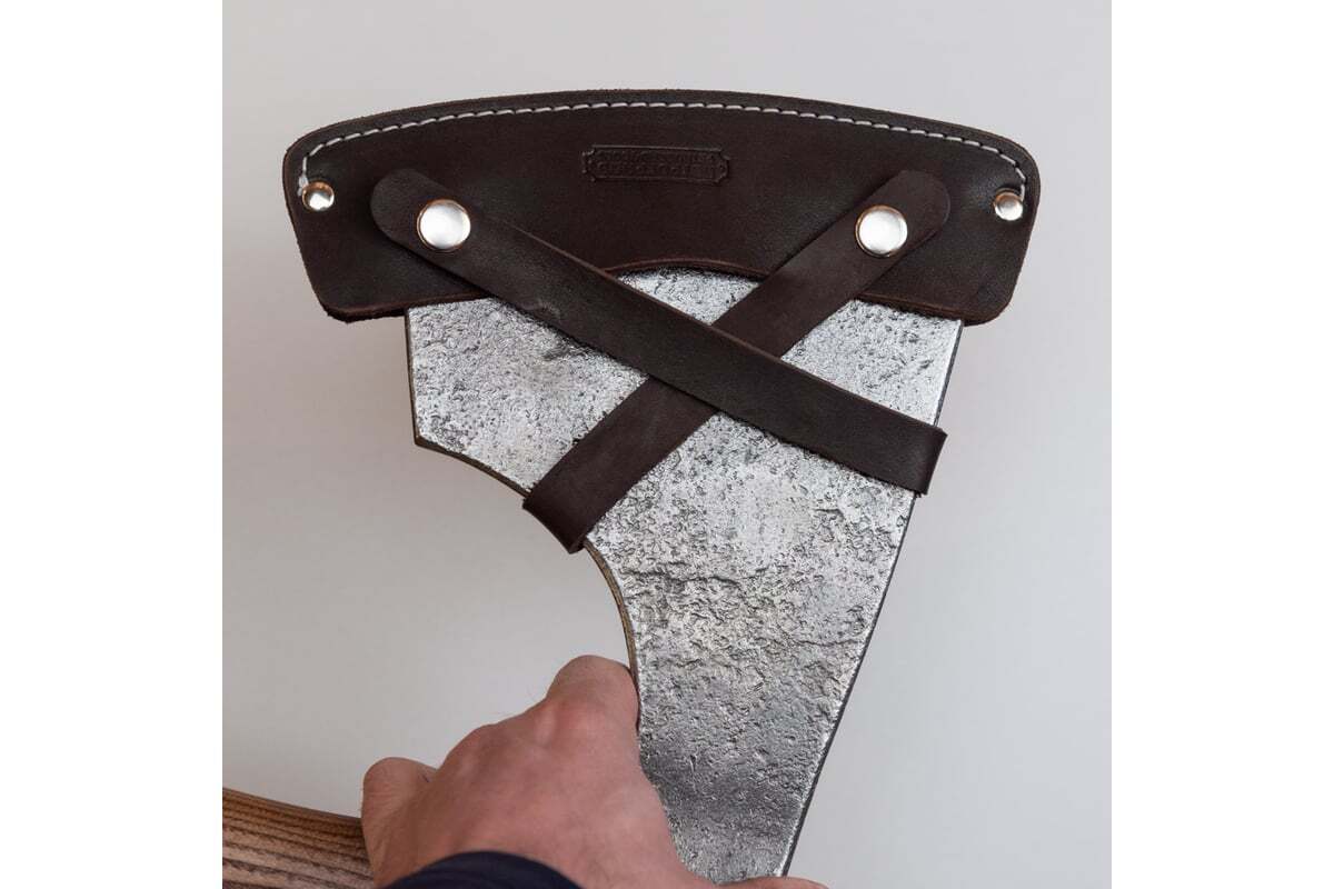 Ручка топора выполнена из древесины ясеня с правильным подбором направления волокон в рукояти. Расклинивание производится на двойной перекрестный клин.
