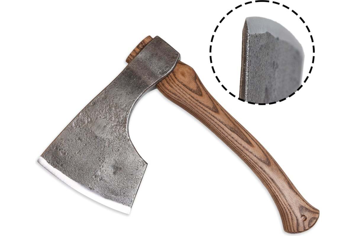 Топор выкован вручную из инструментальной легированной стали с последующей термической обработкой. Все топоры проходят обязательную проверку твердомером. Топор заточен.