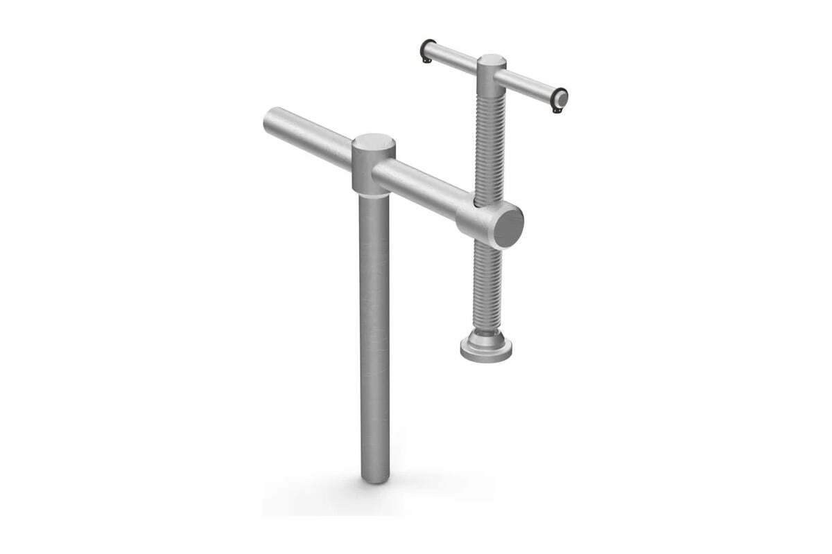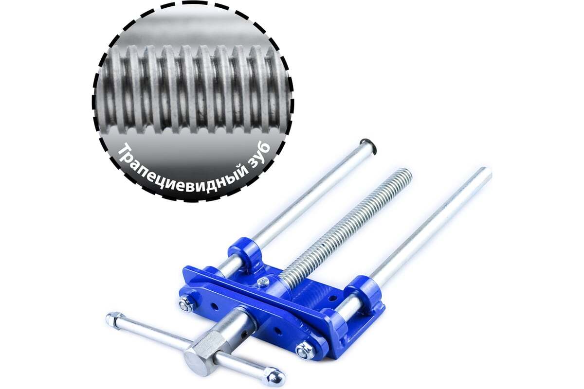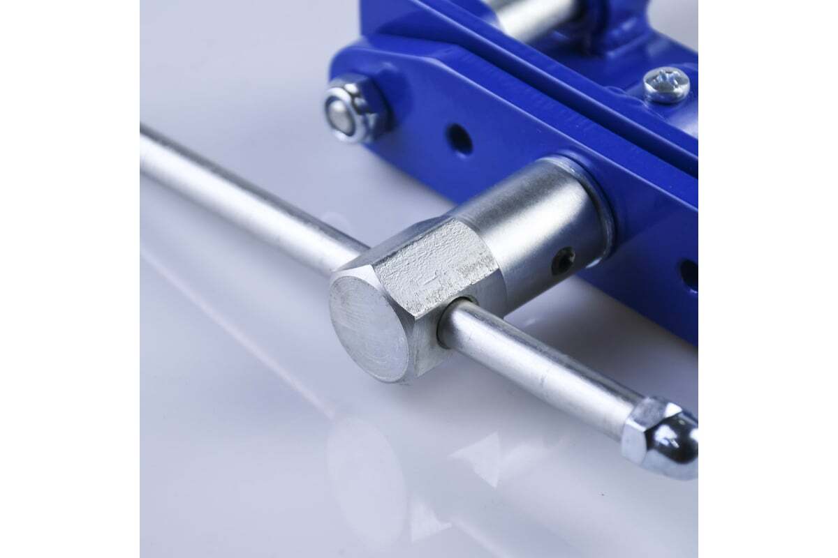 - На передней крепежной планке имеется 2 отверстия для фиксации деревянной губки тисков, на задней установочной планке - 4 отверстия для крепления к столешнице