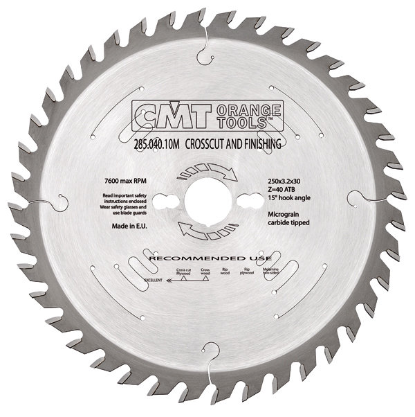 Диск пильный (250x30x3.2/2.2 мм; Z60) CMT 285.060.10M используется совместно с циркулярными пилами и циркулярными станками для продольных и поперечных пропилов твердой и мягкой древесины, фанеры, МДФ, ДСП, OSB. Обеспечивает ровные и чистые края обрабатываемой поверхности. Угол врезания - 10 градусов.