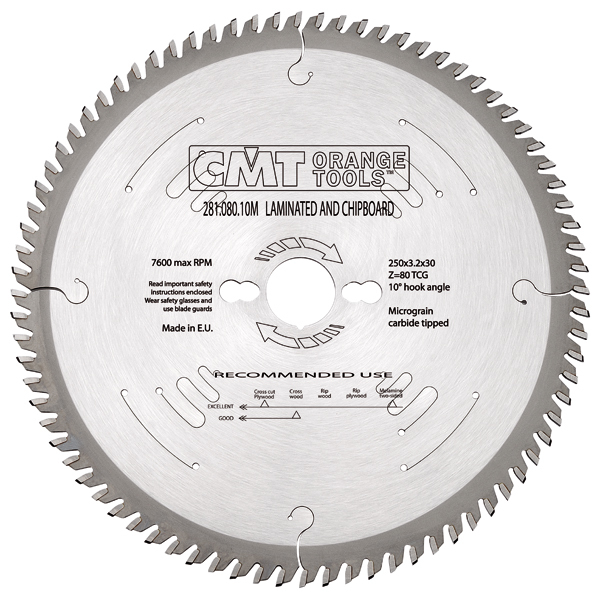 Диск пильный CMT 281.060.10M используется совместно с ручными и стационарными циркулярными пилами, горизонтальными или вертикальными форматно-раскроечными станками. Подходит для продольного пиления ДСП, ЛДСП, МДФ, ламинированных панелей, твёрдой древесины, фанеры, раскроя панельных материалов без сколов. Зубья оснастки выполнены из твердого сплава.