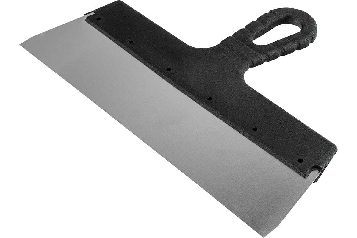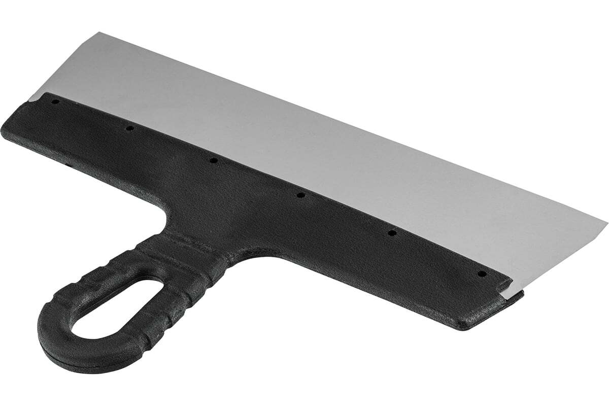 Фасадный шпатель Sparta 85152 с полотном из нержавеющей стали шириной 300 мм и пластмассовой ручкой предназначен для работы со строительными растворами. Используется для их смешивания, нанесения и равномерного распределения по малым или большим поверхностям.