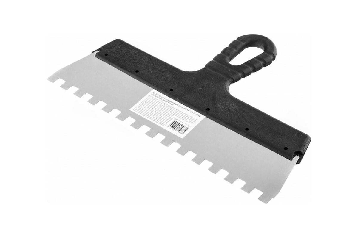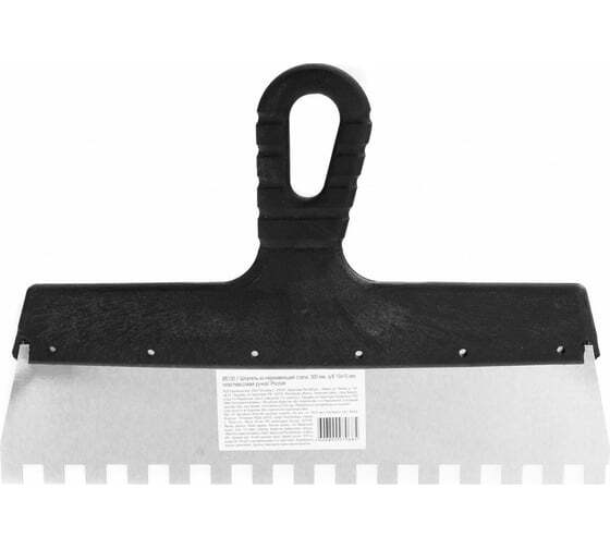 Шпатель Sparta 85130 шириной 300 мм, из нержавеющей стали, с пластмассовой ручкой и зубьями 10 х 10 мм, применяется для равномерного нанесения клея при укладке мелкоформатной плитки, мозаики и т.д. Квадратные зубья облегчают нанесение клеевого состава, позволяя ровно и экономно распределять его по поверхности. Зубья размером 10 х 10 мм рассчитаны на плитку площадью 900-2500 см2.