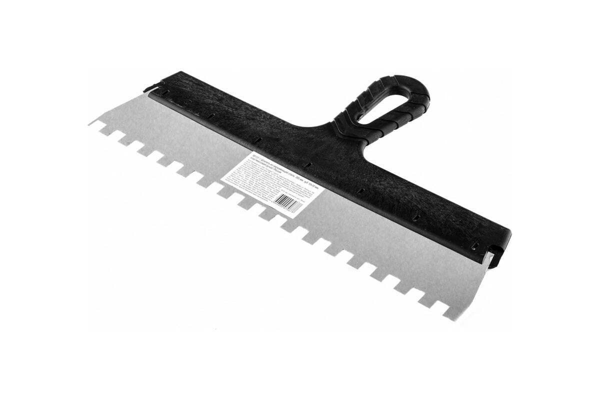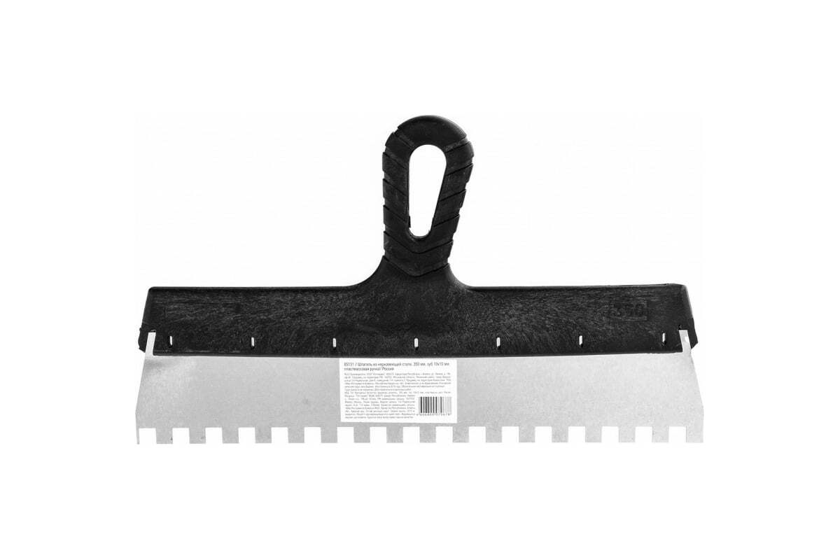 Шпатель Sparta 85131 шириной 350 мм, из нержавеющей стали, с пластмассовой ручкой и зубьями 10 х 10 мм, применяется для равномерного нанесения клея при укладке мелкоформатной плитки, мозаики и т.д. Квадратные зубья облегчают нанесение клеевого состава, позволяя ровно и экономно распределять его по поверхности. Зубья размером 10 х 10 мм рассчитаны на плитку площадью 900-2500 см2.