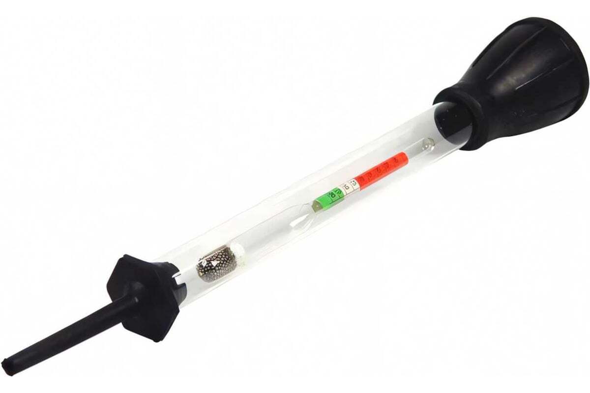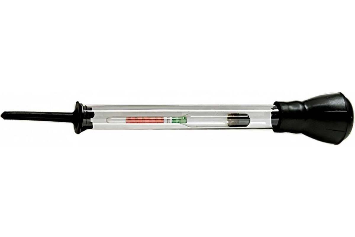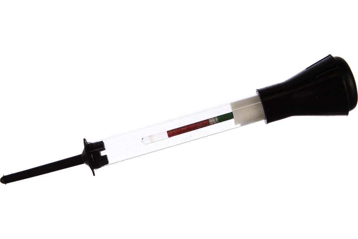 Ареометр для измерения плотности электролита SPARTA 549125 - компактное приспособление с поплавками, имеющими различную степень плавучести. Специальная шкала имеет цветные элементы, с помощью которых наглядно отображается состояние гальванического элемента. Прибор исключительно прост в применении.