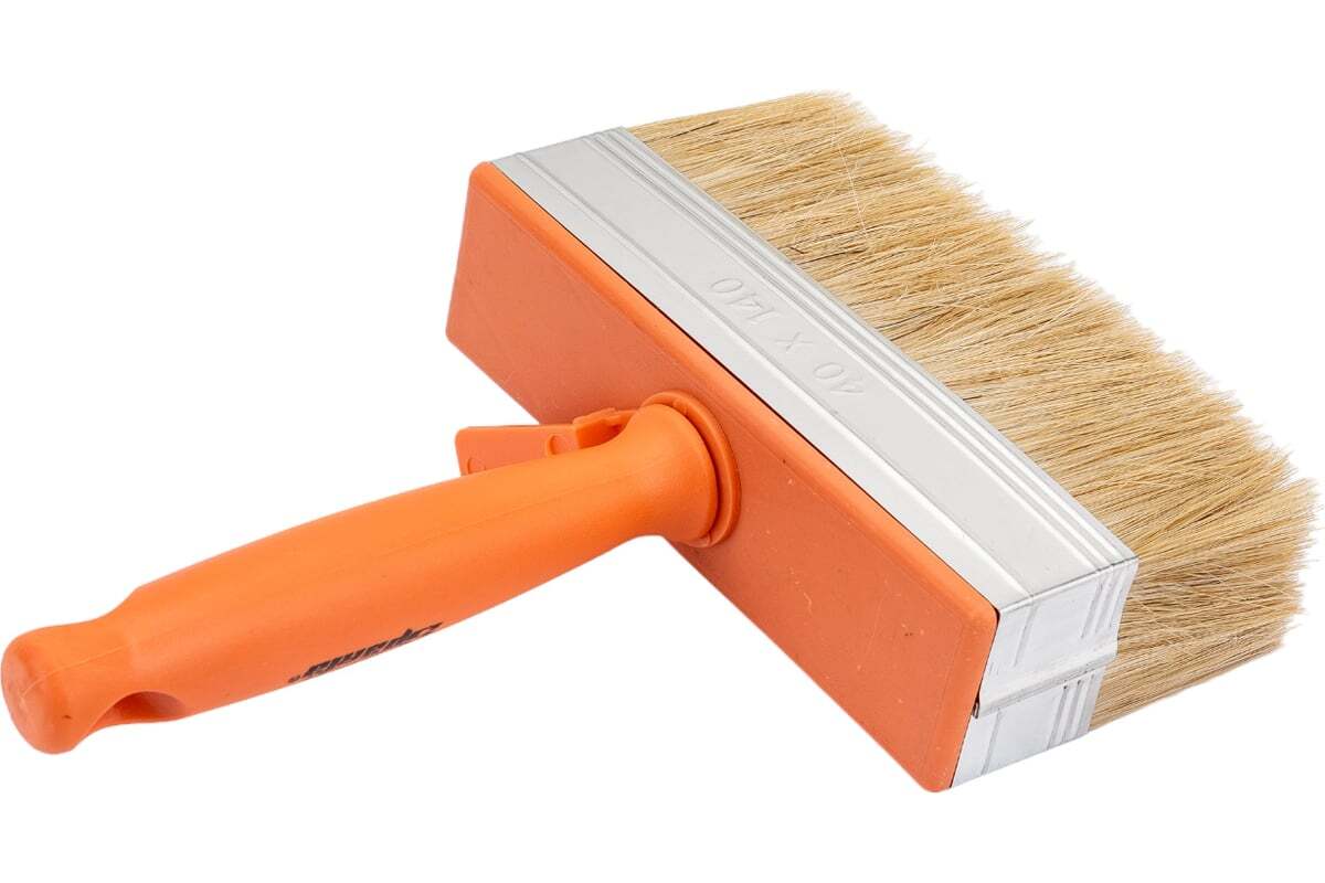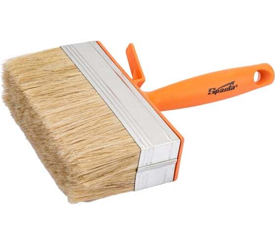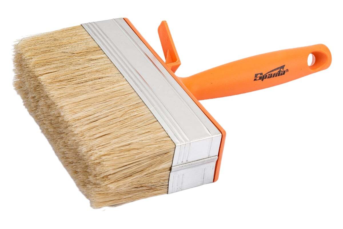 Кисть-макловица SPARTA 841045 предназначена для нанесения на различные поверхности лакокрасочных материалов на масляной основе. Этой кистью, как правило, размывают стены и потолок, наносят известковые и дисперсионные краски, грунтовки, пропитывающие составы, клей. В конструкции предусмотрен специальный крюк для крепления инструмента на краю ведра. Размеры рабочей части кисти составляют 40х140 мм.