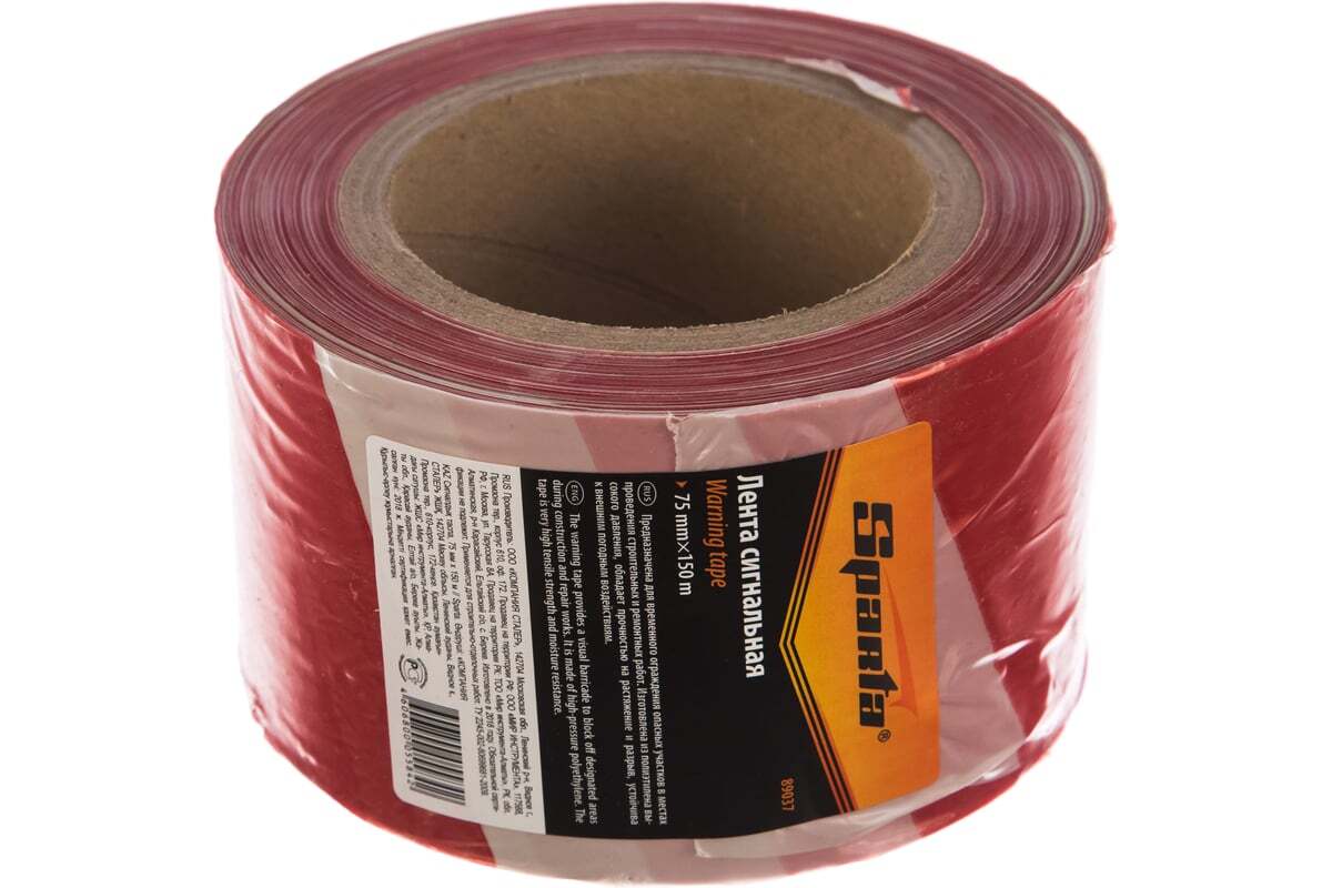 Сигнальная лента Sparta 89037 шириной 75 мм, 150 м в намотке, позволяет оградить опасную зону на строительной площадке, в парке, на дороге и т.д. Красно-белая лента используется для обозначения временной опасности. Она видна издалека, что позволяет направить поток людей в другую сторону, перекрыв доступ к участку.