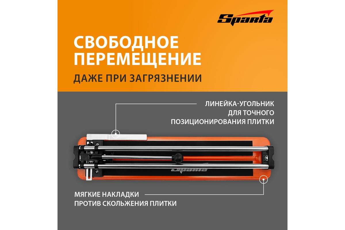 Мягкие амортизирующие накладки препятствуют скольжению плитки. Режущий ролик из карбида вольфрама обладает высокой износостойкостью и ресурсом. Металлическая линейка-угольник обеспечивает точное позиционирование плитки на станине.