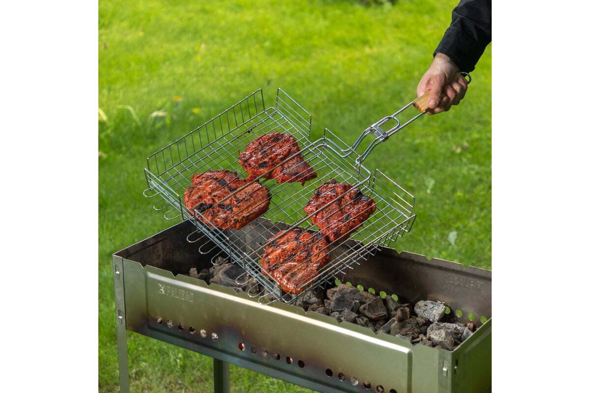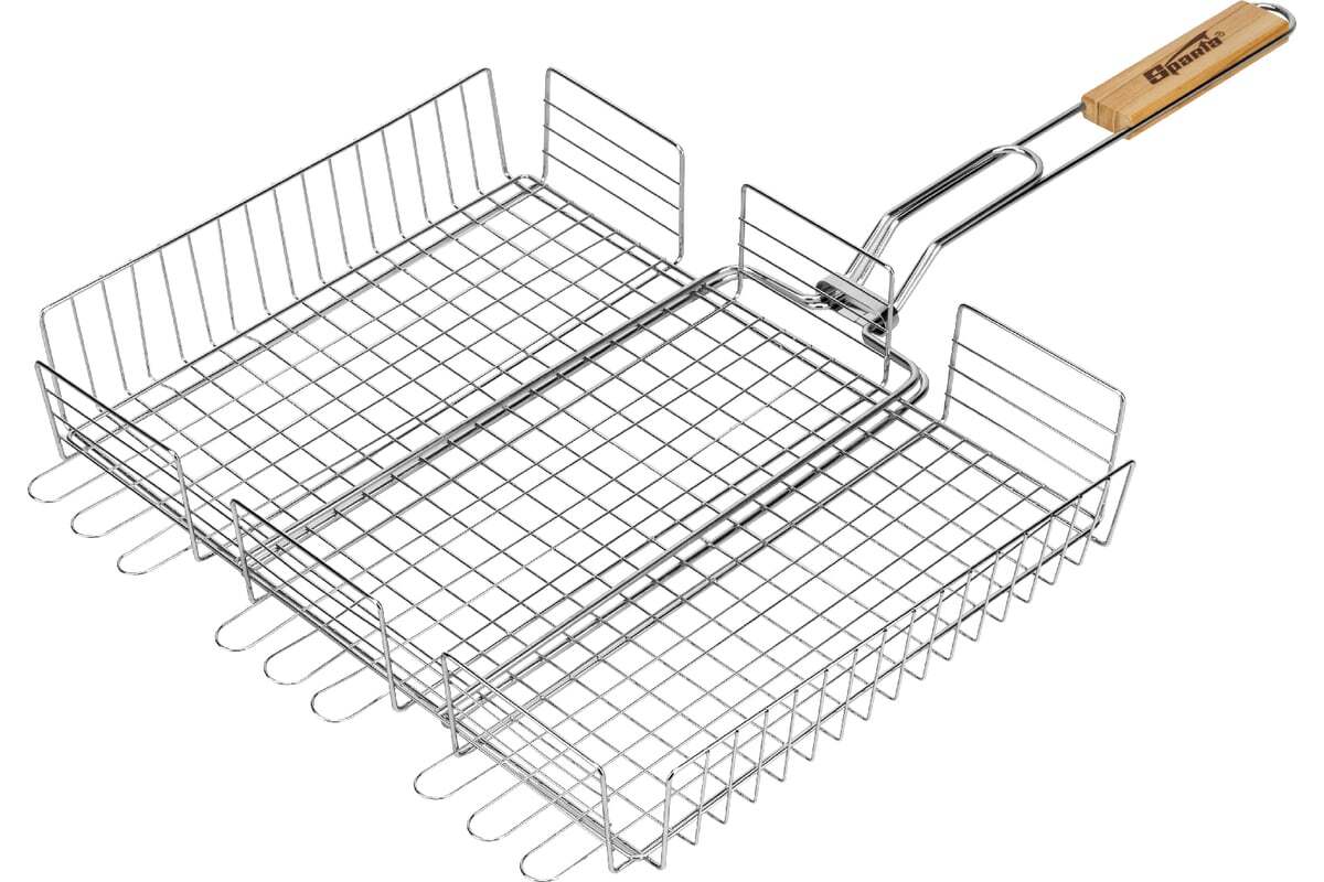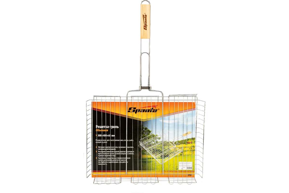Объемная хромированная решетка-гриль Sparta 69561 размером 300 х 400 х 65 мм используется для удобного размещения продуктов и их приготовления на углях. С ее помощью мясо, рыба или овощи обжариваются равномерно с двух сторон, что позволяет получить вкусные блюда. За счет регулировки высоты решетки возможно приготовление продуктов любого размера без потери сока.