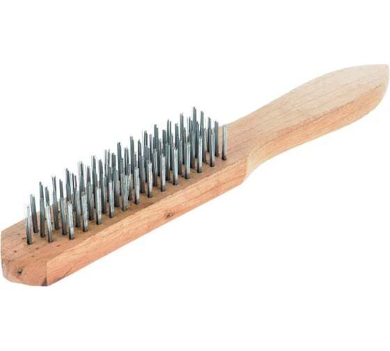 Щетина щетки изготовлена из стальной проволоки, что способствует очистке рабочих поверхностей даже от самых трудноудаляемых загрязнений.
