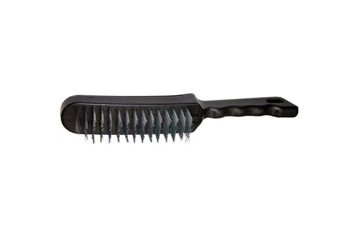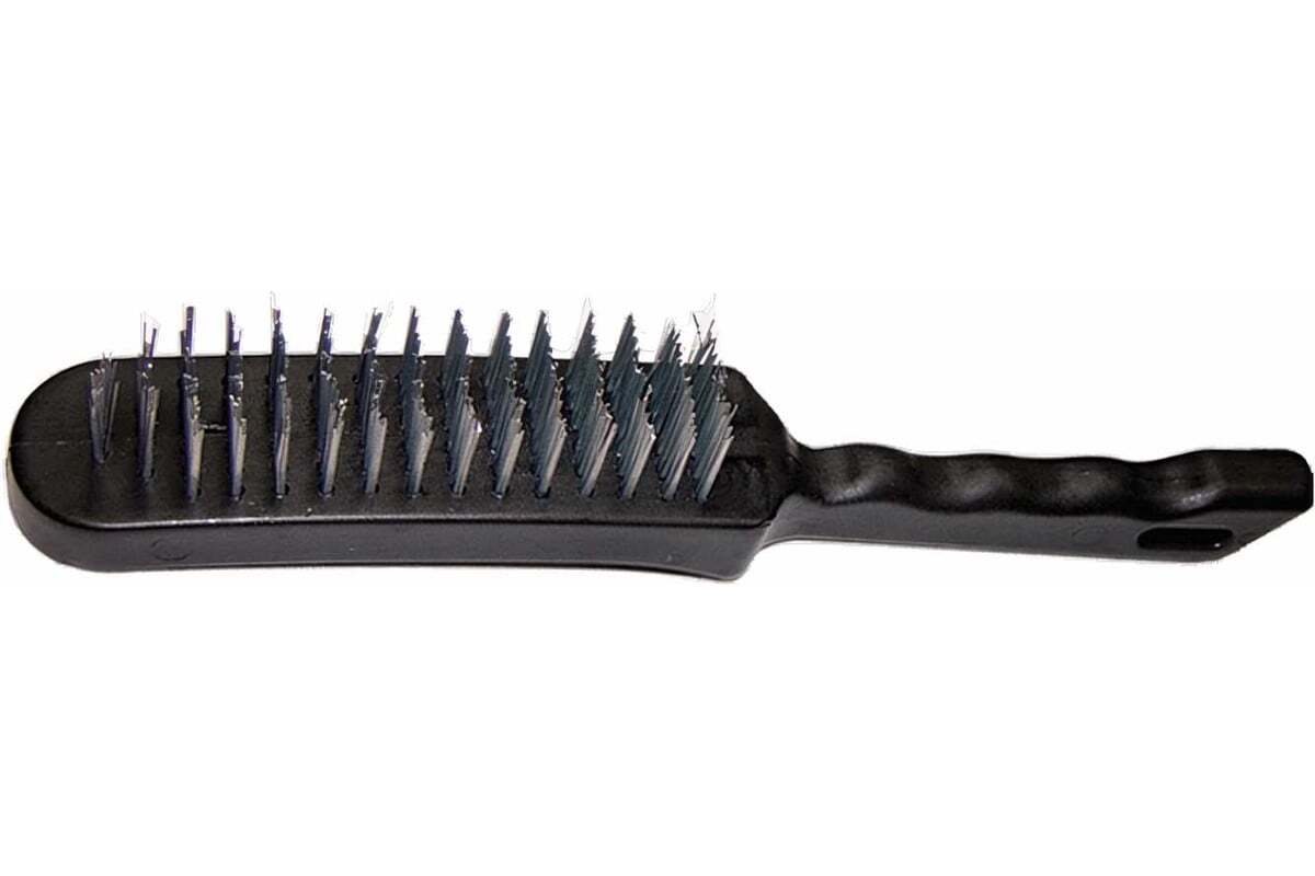Металлическая 5-рядная щетка Sparta 748675 с пластмассовой ручкой используется для обработки металлических, деревянных и других поверхностей. Очищает их от загрязнений, ржавчины и старых лакокрасочных покрытий. Пучки проволоки расположены в 5 рядов, что обеспечивает высокую эффективность зачистки. Щетина надежно закреплена в основании и не выпадает во время работы. Щетка будет полезна во время строительных, ремонтных работ, а также пригодится дома или в гараже.