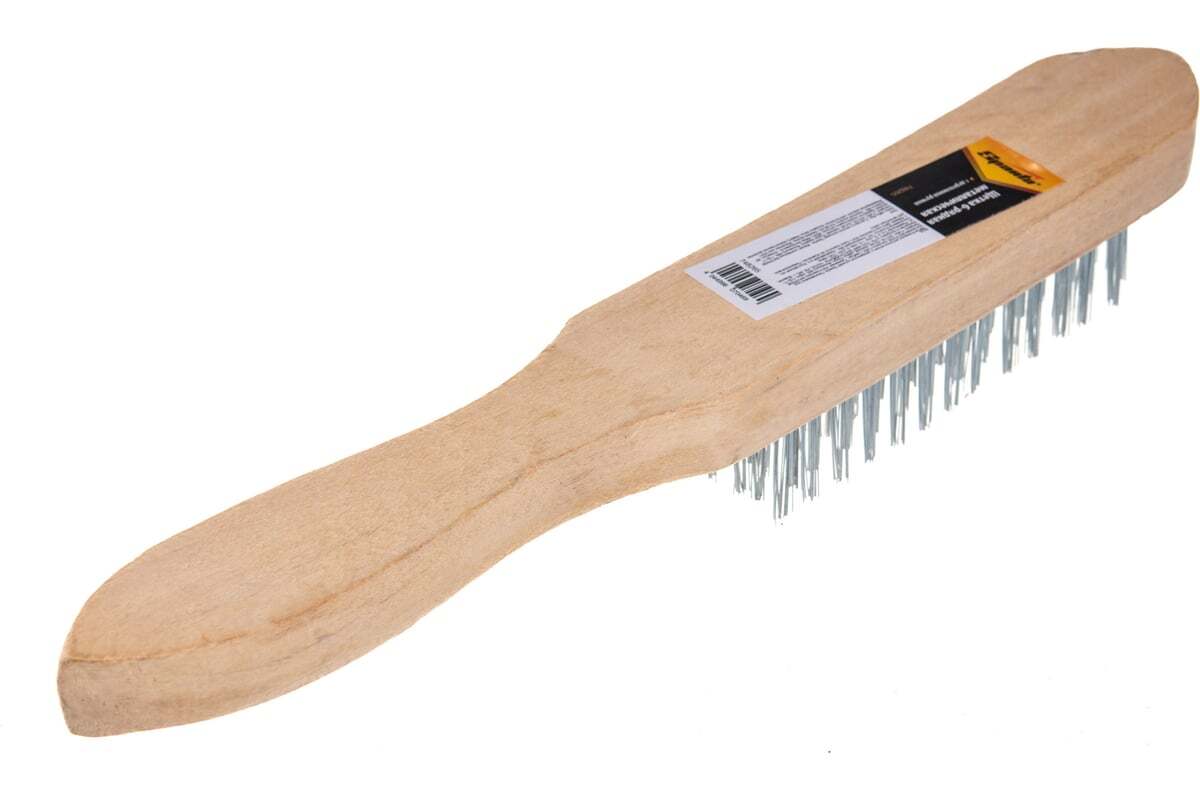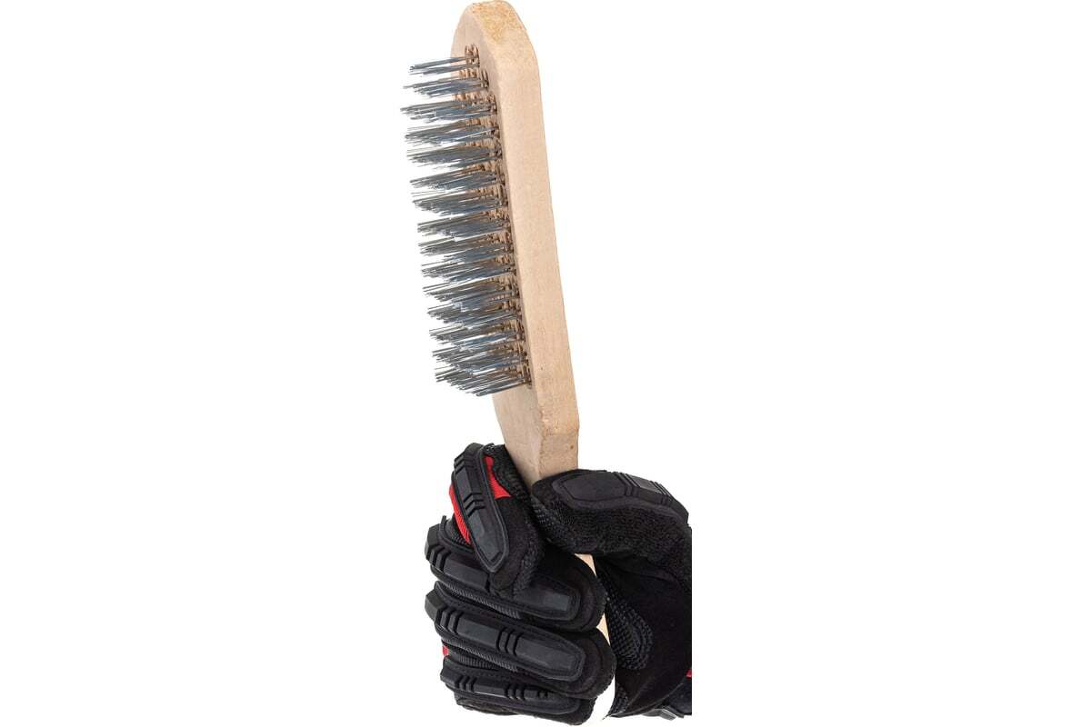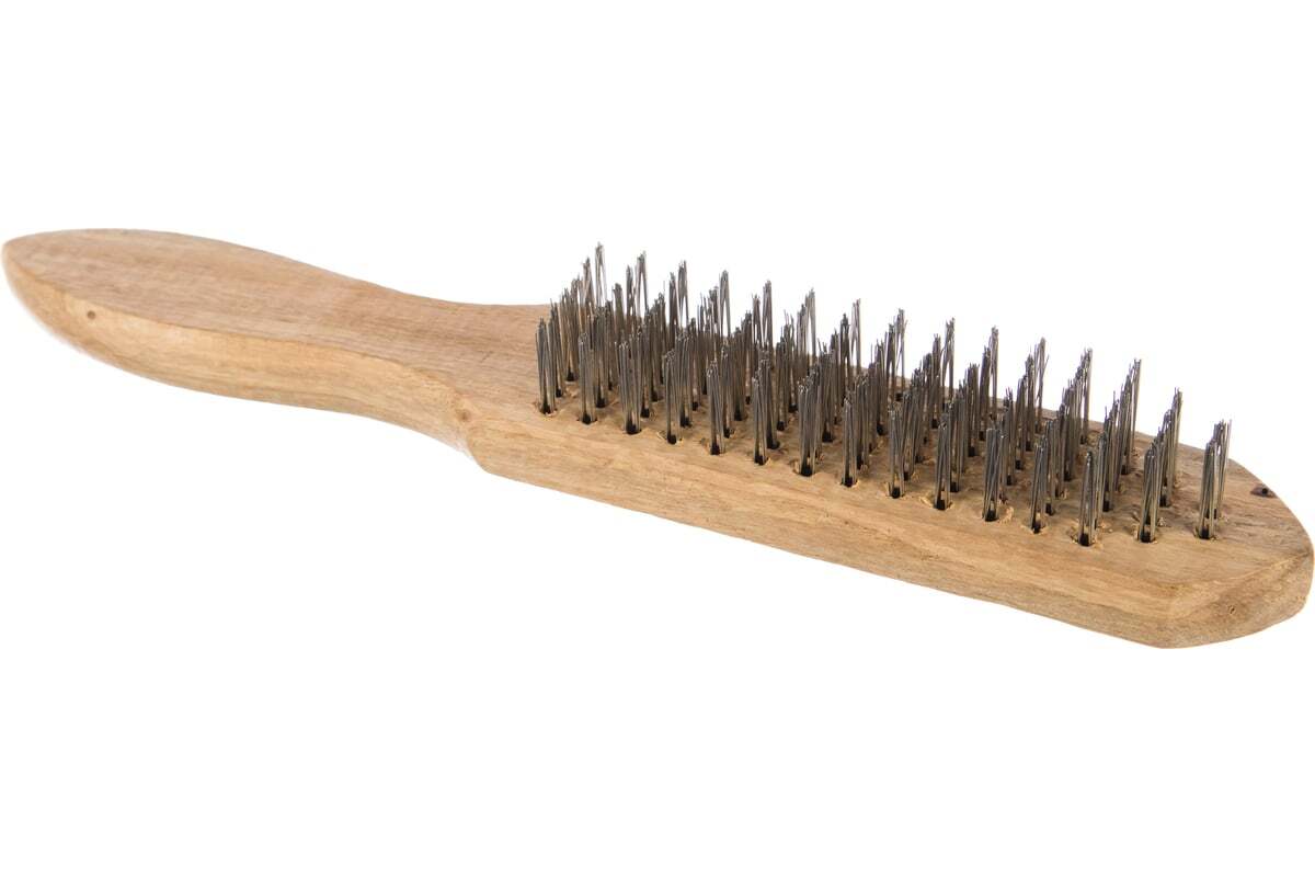 Металлическая 6-рядная щетка SPARTA 748265 имеет деревянную основу. Благодаря стальной щетине щетка применяется для чистки металлических поверхностей. Форма рукоятки способствует удобному удержанию щетки.