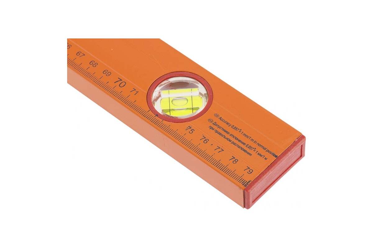 Алюминиевый уровень с линейкой 800 мм SPARTA 330265 отличается прочностью и долговечностью. Инструмент выполнен из алюминиевого профиля, имеющего квадратное сечение. В него встроены три акриловых колбы для определения отклонений от горизонтали, вертикали и от угла в 45°. Изделие подходит для проведения разметочных работ, так как на его корпусе расположена мерная шкала.
