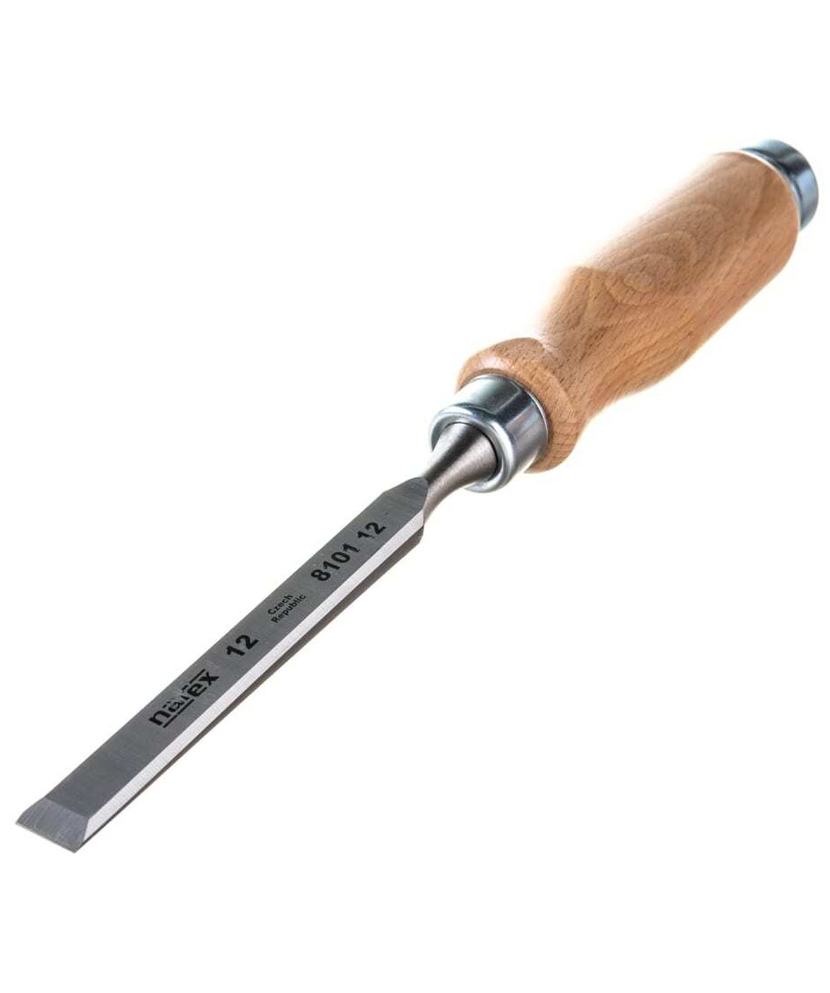 Плоская стамеска 12 мм с деревянной светлой ручкой Narex 810112 представляет собой качественный инструмент для обработки деревянных заготовок. Рабочая часть стамески изготовлена из кованой хроммарганцевой стали, что обеспечивает прочность, стойкость к износу и долгий срок службы. Твердость стали до 59 HRC. Эргономичная рукоятка из лакированной древесины обеспечивает удобный хват. Металлический обруч рукояти защищает древесину от растрескивани