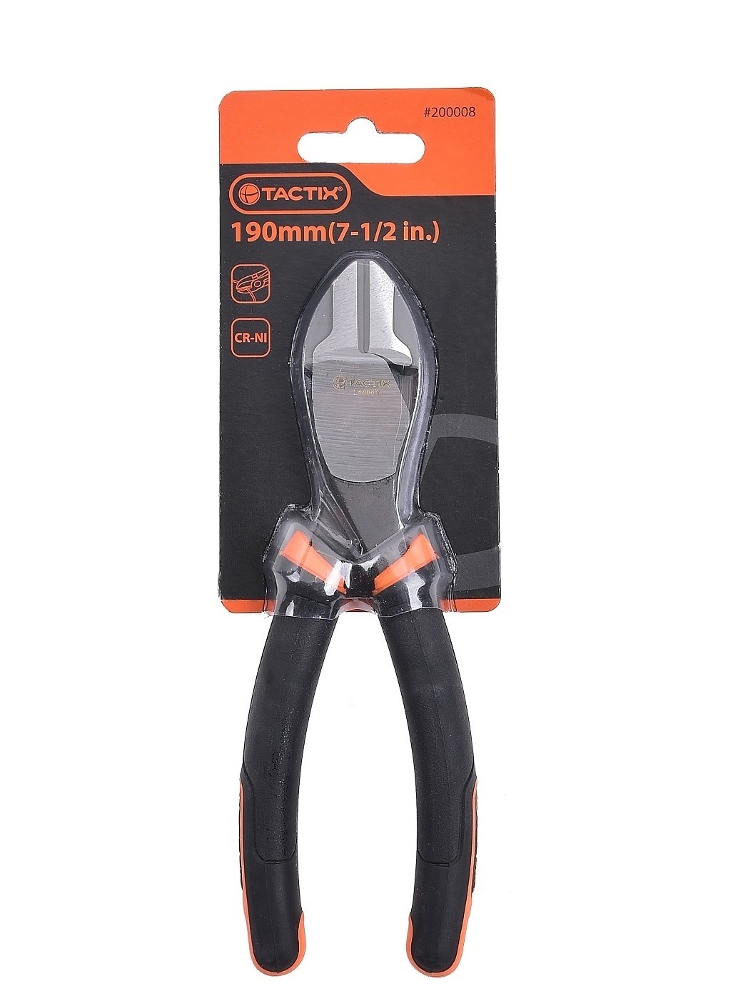 Диагональные кусачки TACTIX усиленные ERGO 190 мм 200008 предназначены для резки проволоки, проводов и кабелей, а также резки пластмассовых и металлических конструкций. Губки инструмента выполнены из хромоникелевой стали, что обеспечивает высокую прочность и долгий срок службы. Двухкомпонентная рукоятка эргономичной формы служит для комфортной работы и лучшего хвата. Подходят для профессионального и бытового использования.