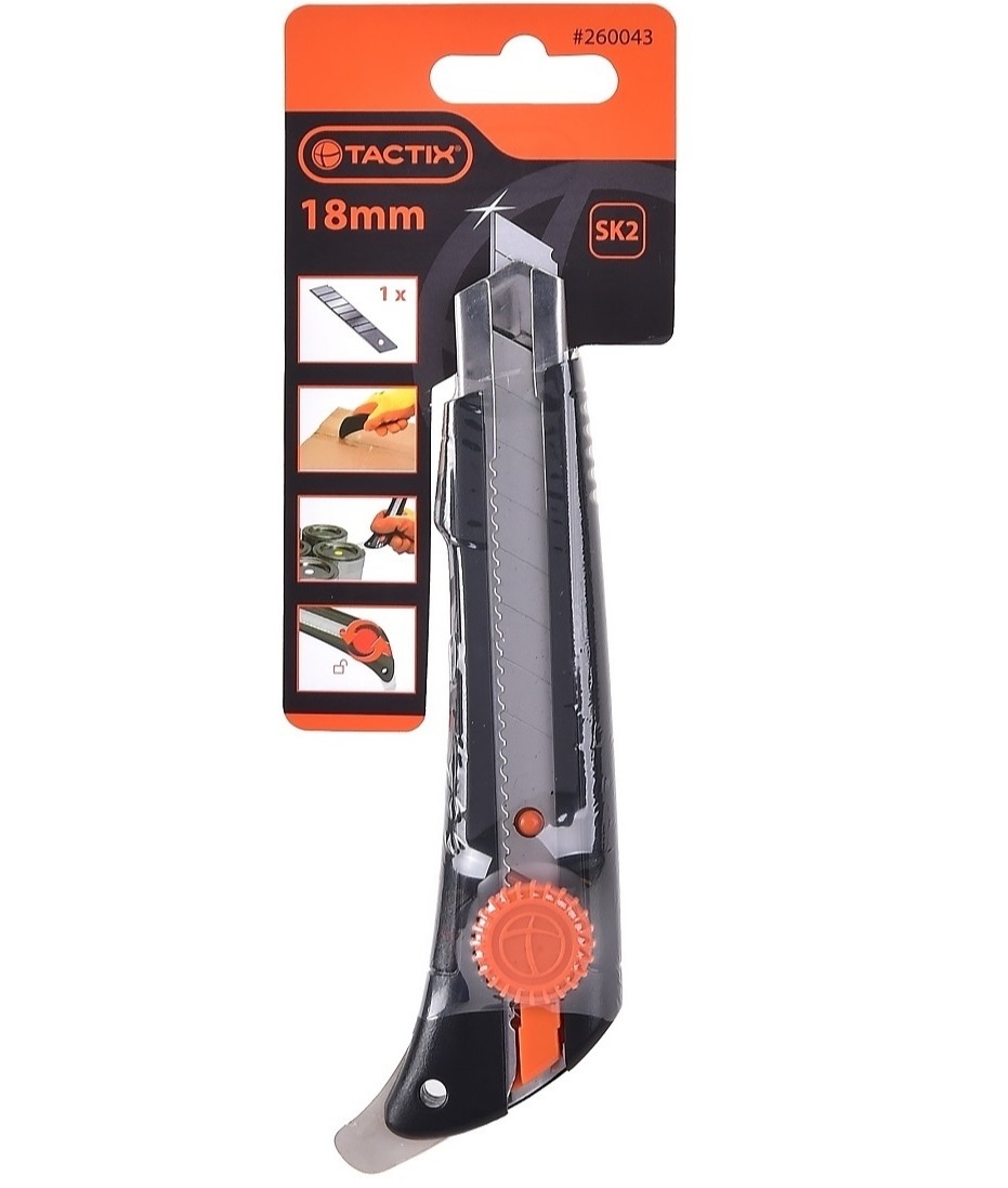 Нож с лезвием 18 мм пластиковый с металлическим носиком - лопаткой Tactix 260043