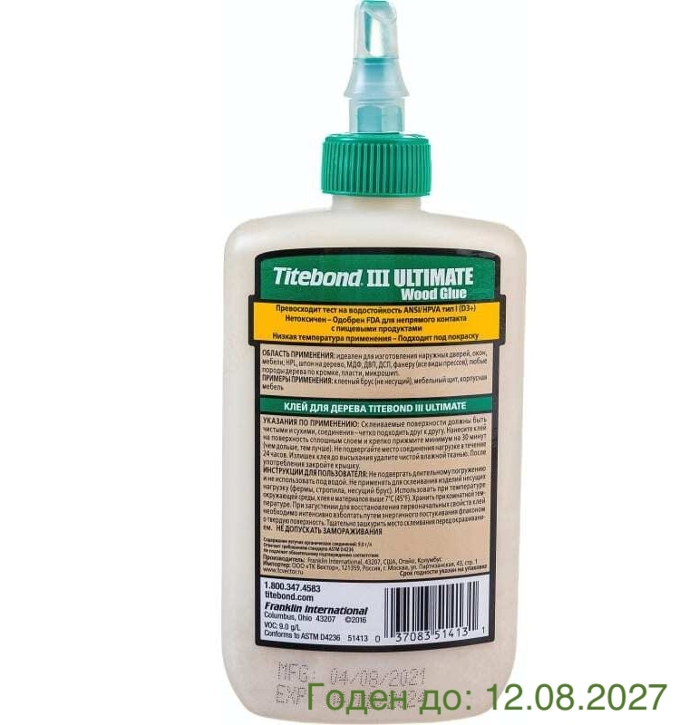 Профессиональный клей для дерева, однокомпонентный, по классу водостойкости близок к D4 - Ultimate III Wood Glue 237 мл