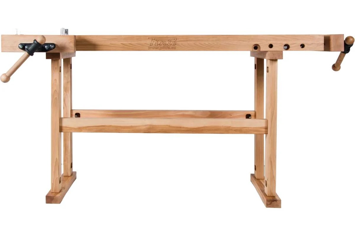 - Прочное подверстачье из массива бука крепится болтами, которые при необходимости можно подтянуть в процессе эксплуатации.