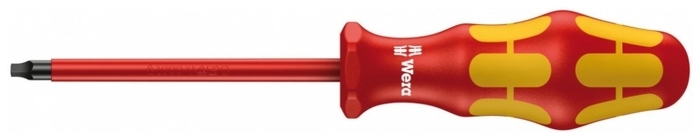 Отвертка диэлектрическая Wera Kraftform Plus 168 i VDE для винтов с внутренним квадратом #2х100. С многокомпонентной изолированной рукояткой Kraftform с защитой от перекатывания.