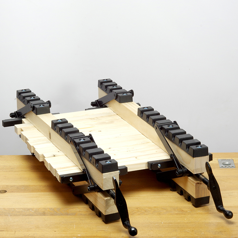 • вайма для склеивания щитов WOODWORK легко адаптируется к вашему проекту - создайте зажим любой длины из прочных пластиковых гребёнок с 12 выемками для максимальной регулировки для работы с заготовками различной ширины