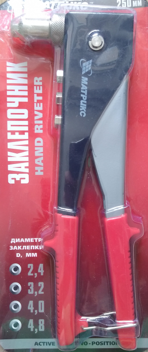 Заклепочник, 250 мм, переставной 0-90 градусов для вытяжных заклепок 2,4-3,2-4,0-4,8 мм Matrix 40527