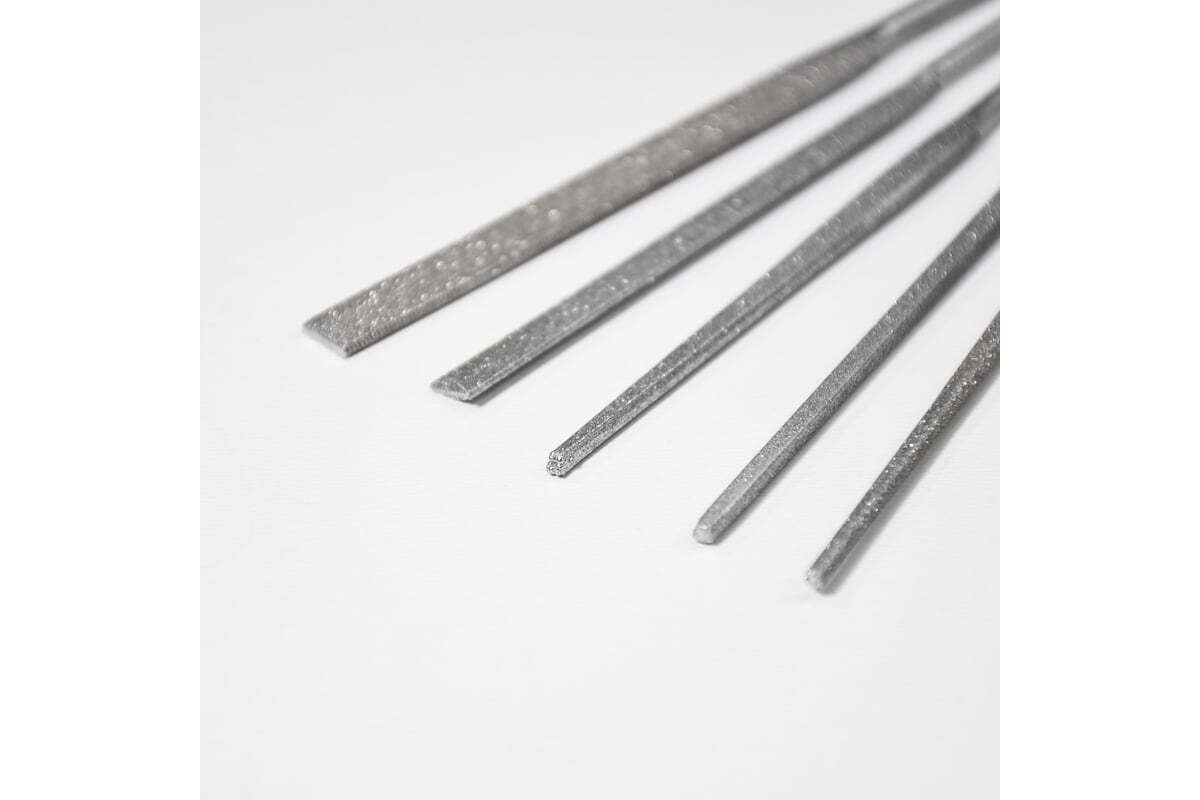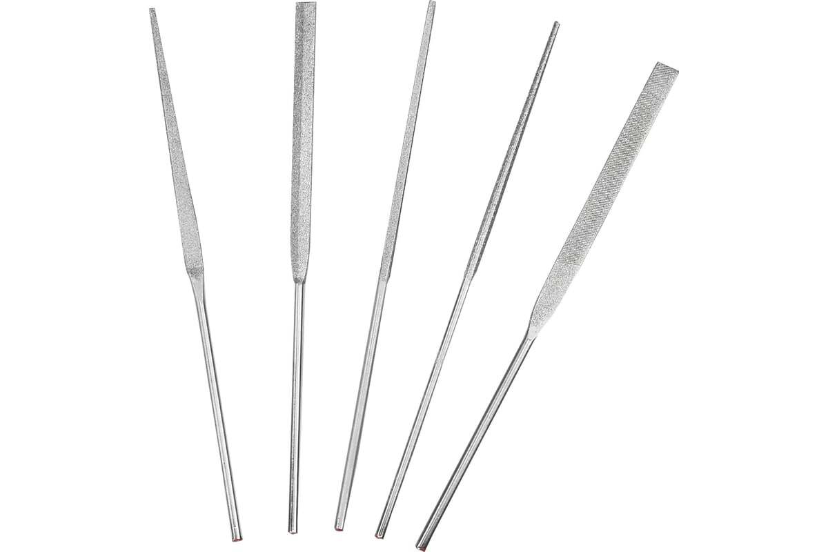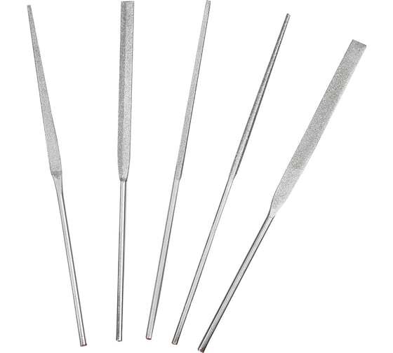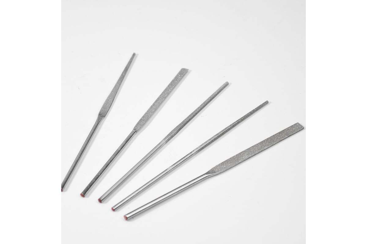 Алмазные надфили Петроградъ 160мм, 5 штук М00015990 изготавливается с применением природных и синтетических алмазных порошков зернистостью в диапазоне 40/28 — 160/125 на гальванической никелевой связке. Длина рабочей поверхности 80 мм. Общая длина - 158 мм.