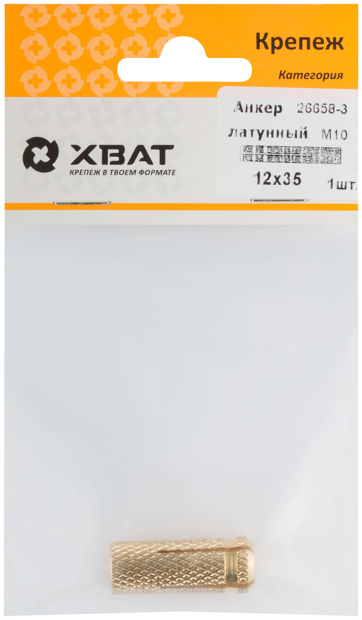 Анкер латунный М10, D 12 х 35 мм (фасовка 1 шт.)