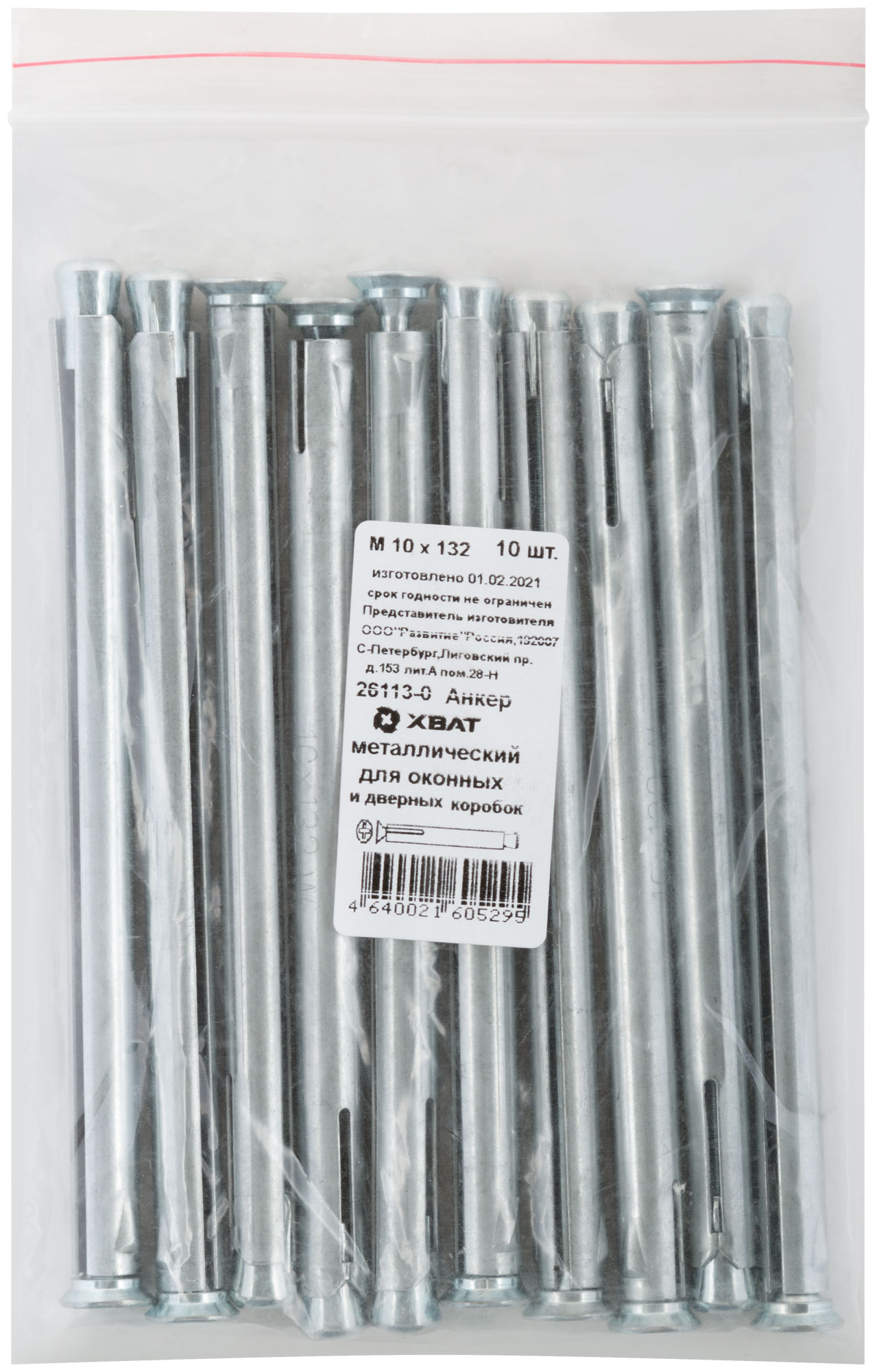 Анкер металлический для оконных и дверных коробок М10 х 132 10 шт. Фасовка