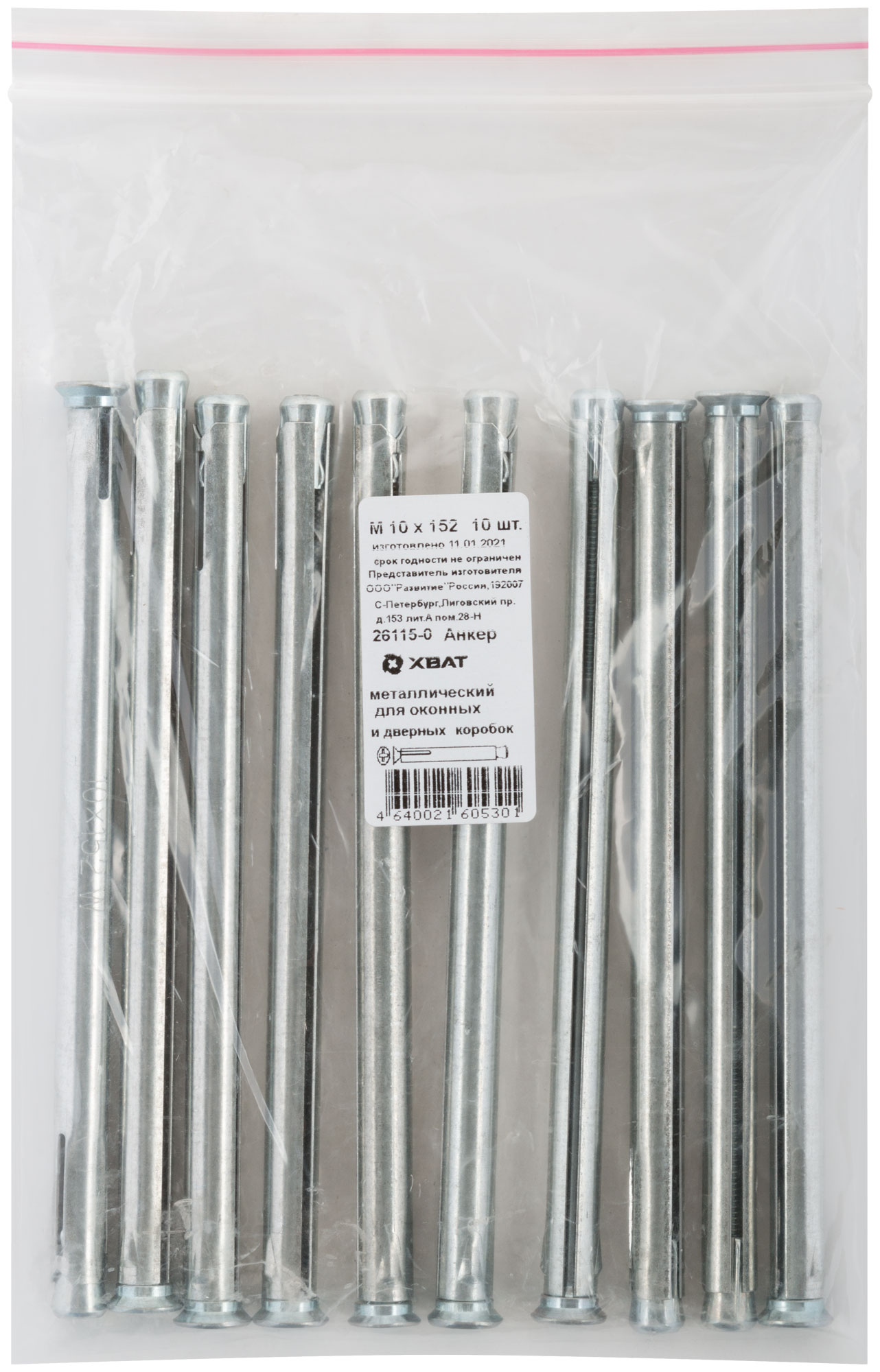 Анкер металлический для оконных и дверных коробок М10 х 152 10 шт. Фасовка