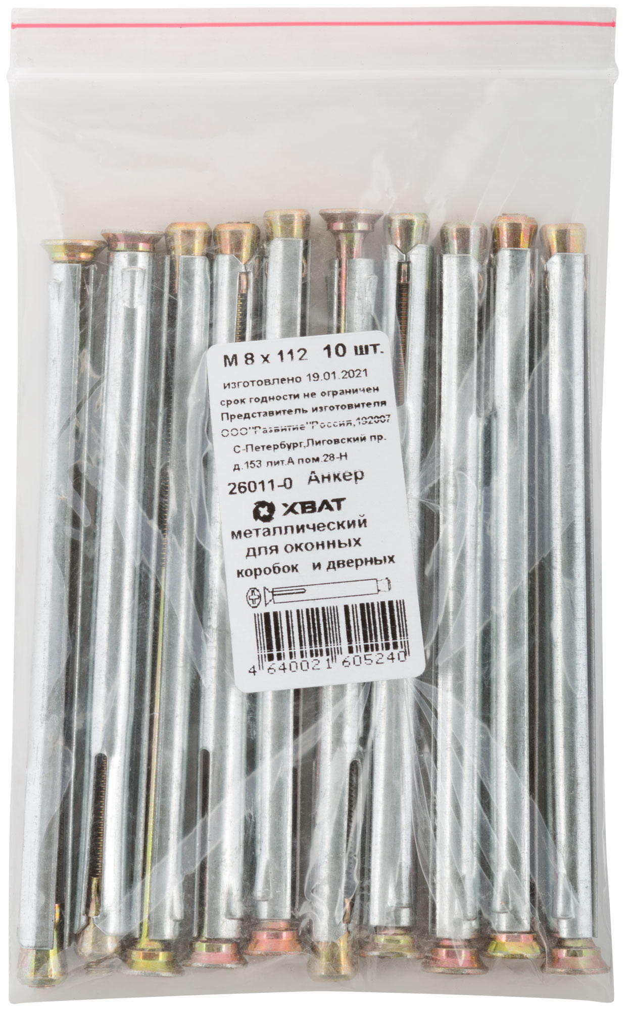 Анкер металлический для оконных и дверных коробок М8 х 112 10 шт. Фасовка