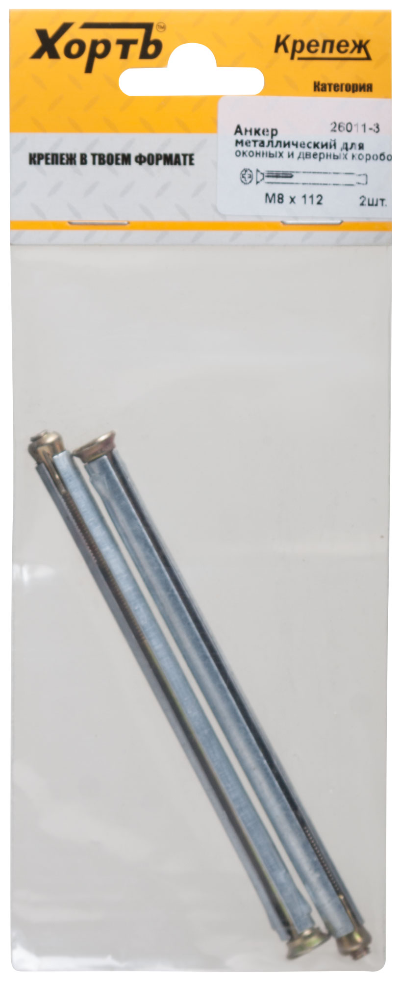 Анкер металлический для оконных и дверных коробок М8 х 112 (фасовка 2 шт.)