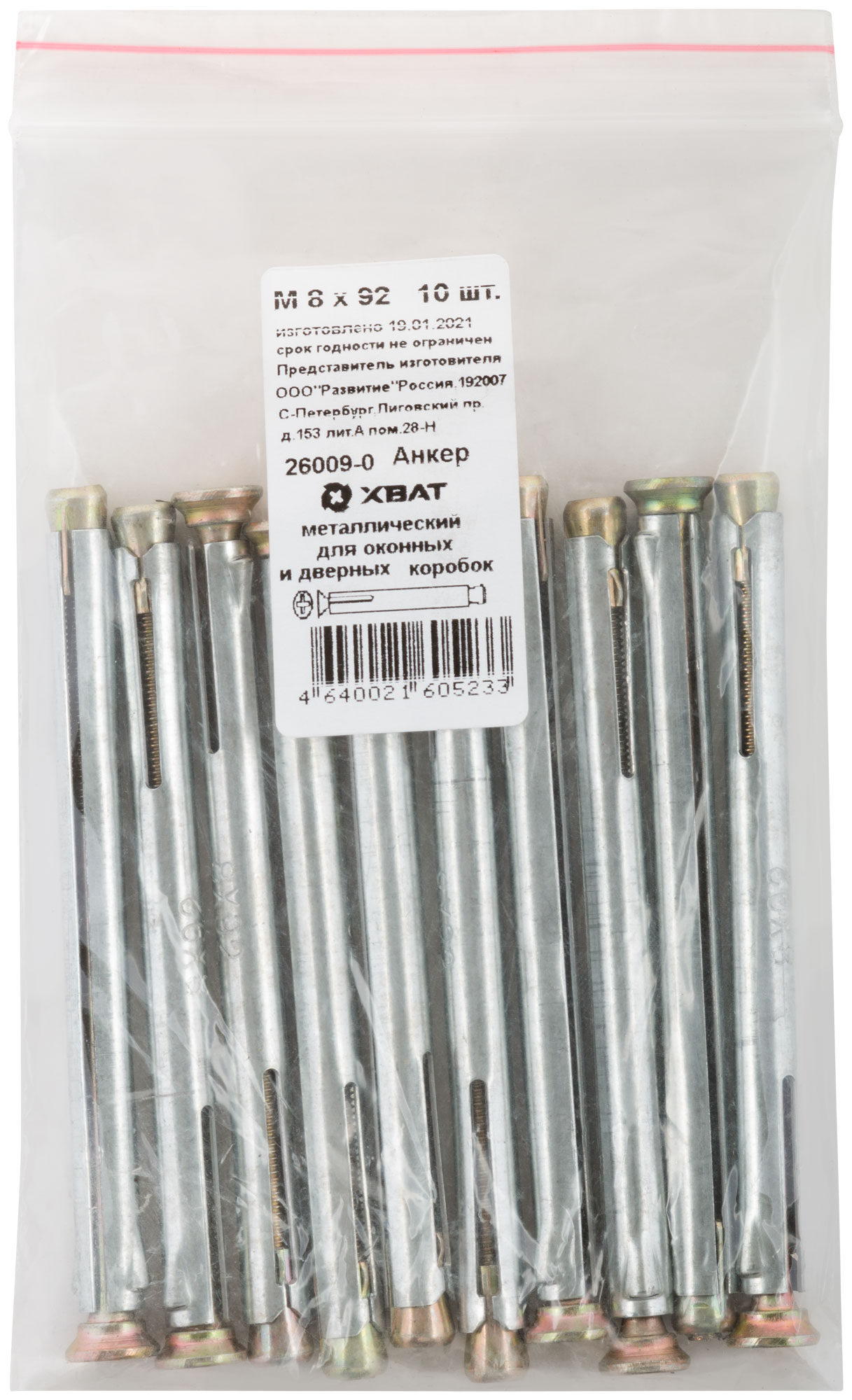 Анкер металлический для оконных и дверных коробок М8 х 92 10 шт. Фасовка