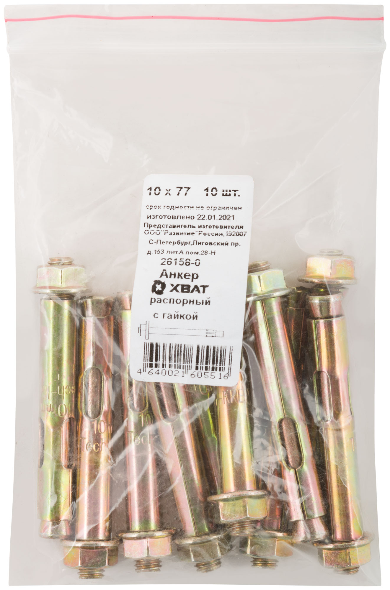 Анкер распорный с гайкой 10 х 77 10 шт. Фасовка