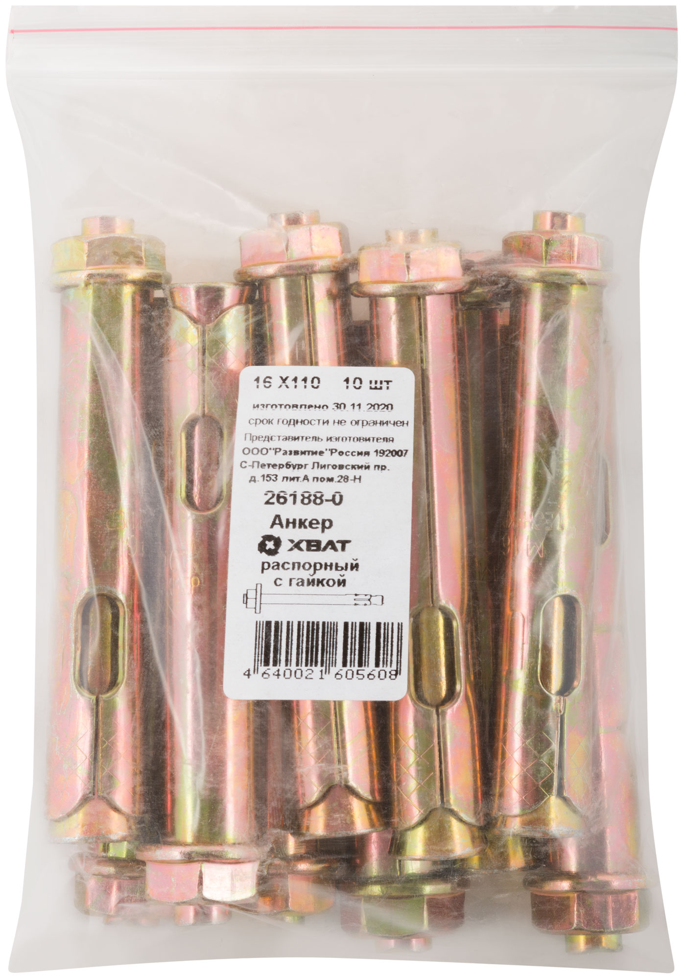 Анкер распорный с гайкой 16 х 110 10 шт. Фасовка
