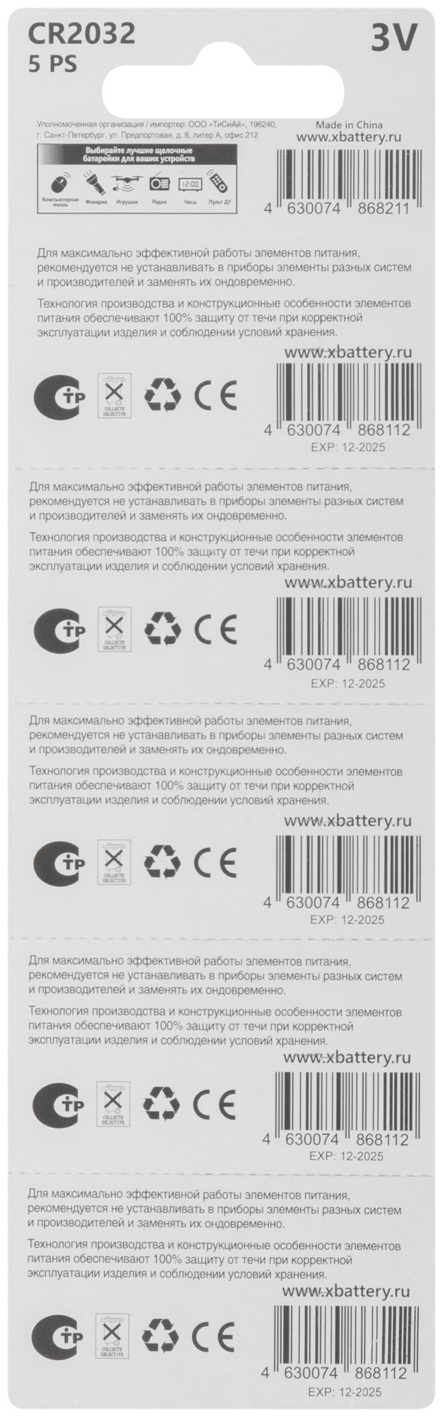 3 В, 180 мА/ч, 2,89 г. Расчетное удержание заряда при 20 °С: после 12 месяцев хранения 96%; после 24 месяцев хранения 90%. Упаковка: блистер.