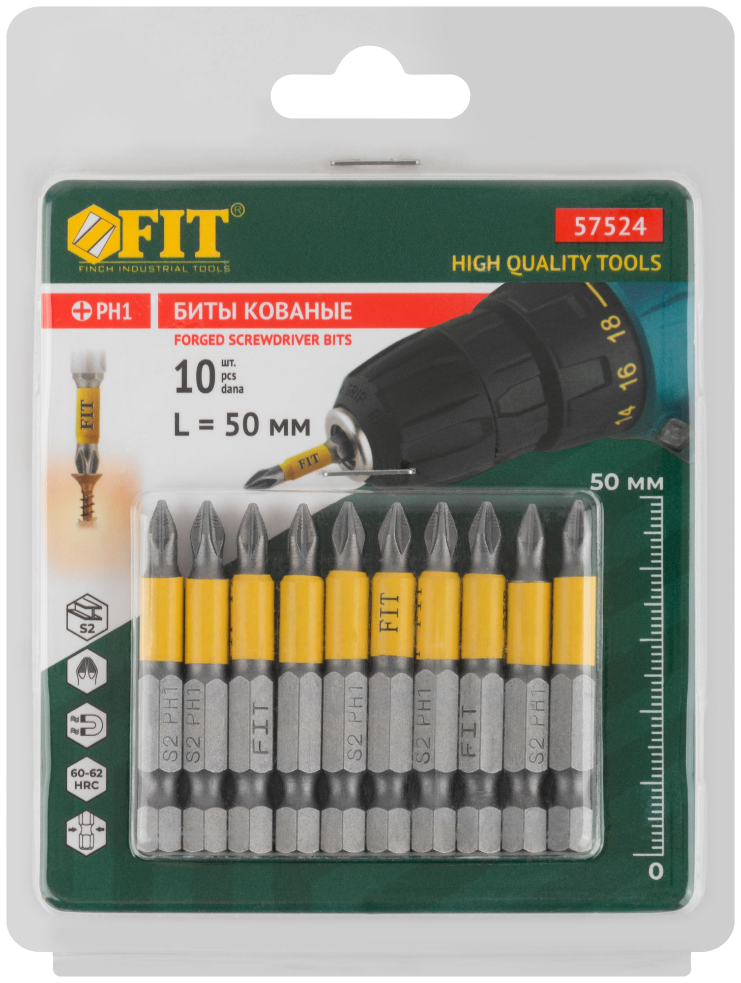 Биты кованые, сталь S2, односторонние 50 мм PH1, Профи 10 шт., блистер