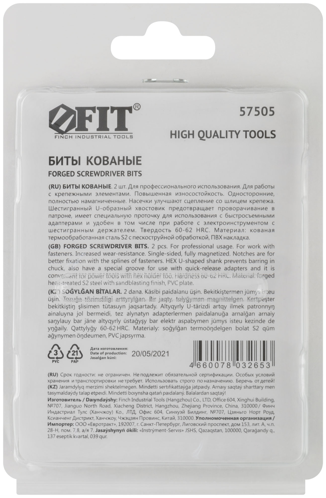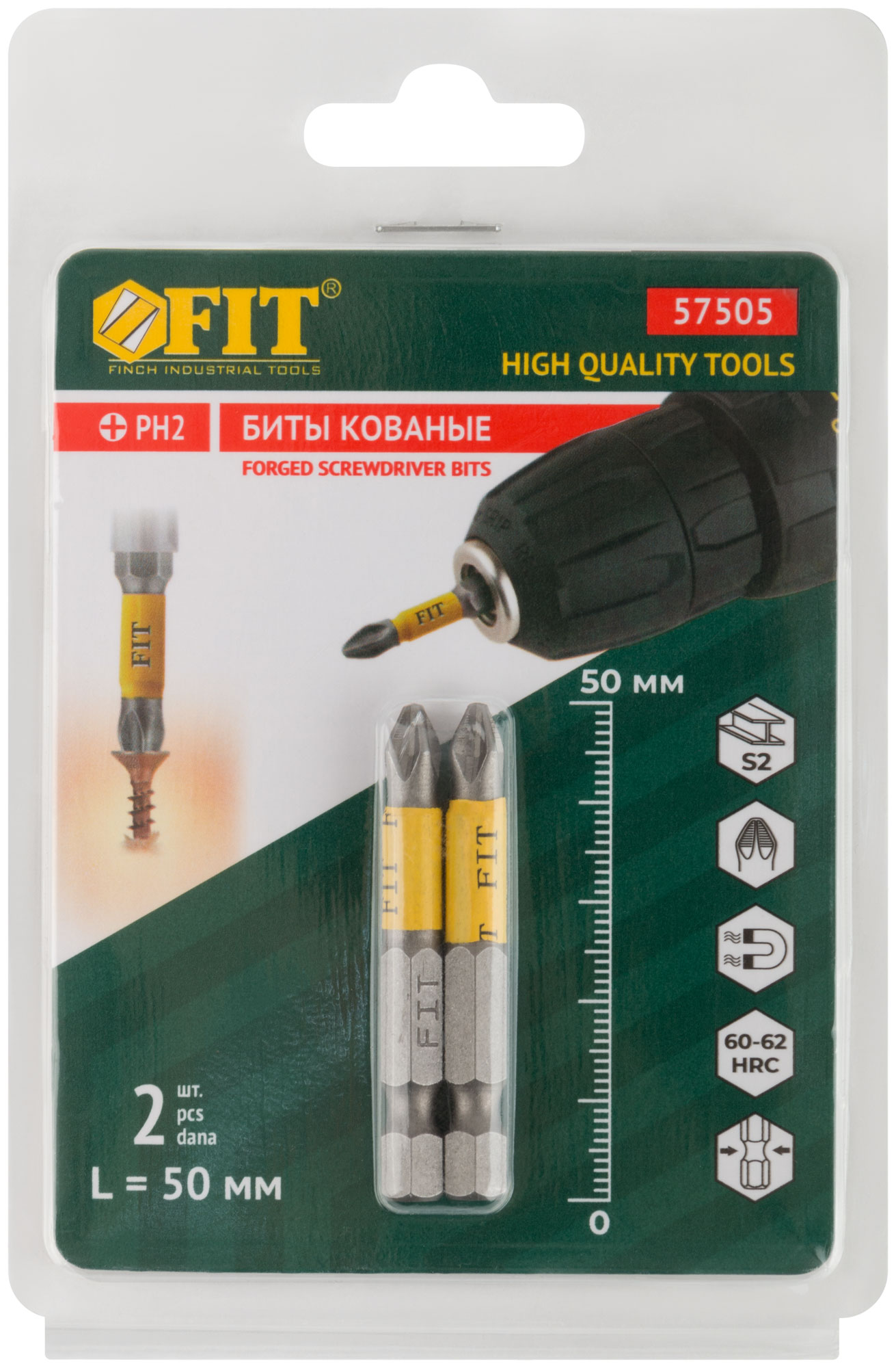 Биты кованые, сталь S2, односторонние 50 мм PH2, Профи 2 шт., блистер