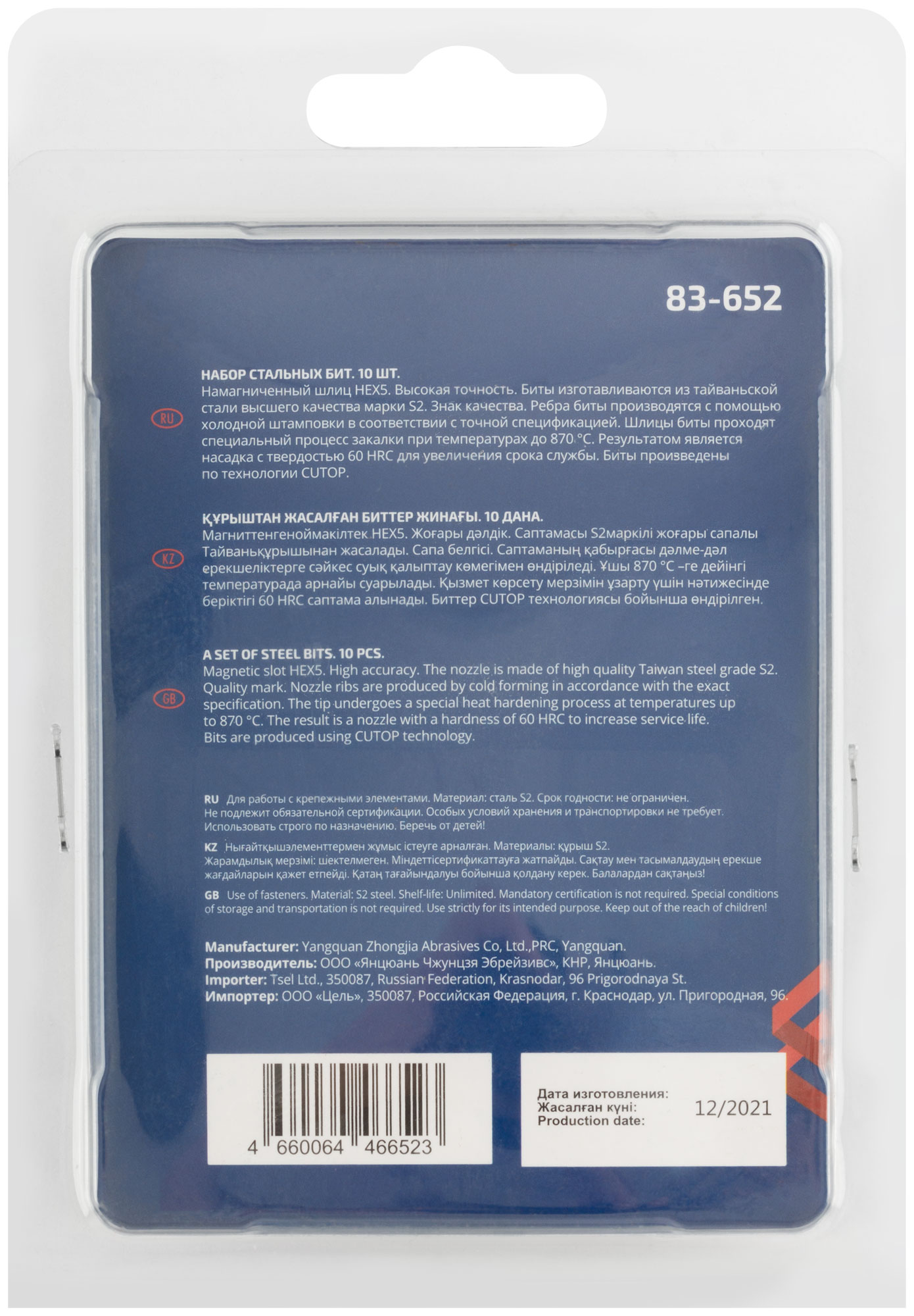 Намагниченный шлиц, антискользящие риски. Высокая точность. Биты изготавливается из тайваньской стали высшего качества марки S2. Знак качества. Ребра биты производятся с помощью холодной штамповки в соответствии с точной спецификацией. Кончик проходит специальный процесс закалки при температурах до 870°C. Результатом является насадка с твердостью 60 HRC для увеличения срока службы. Биты произведены по технологии CUTOP. Ресурс биты от 2000 шт. саморезов (собственные испытания, проведенные на саморезах по дереву 3,5х41). Упаковка: картонный подвес.